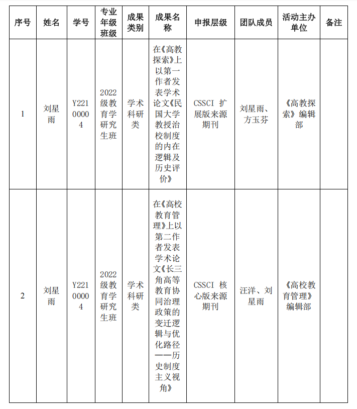 为全面贯彻党的教育方针,落实立德树人根本任务,充分调动和激发学生学习内在动力,根据《安庆师范大学学生实践和创新成果奖励办法(修订)》(校政字〔2024〕34号)文件,beat365在线唯一官网登录团委对照标准,审核学生提交的支撑材料,共计有2项实践和创新成果申报,现将《安庆师范大学beat365在线唯一官网登录2025届毕业生2024—2025学年学生实践和创新成果申报名单》(详见附件)予以公示。