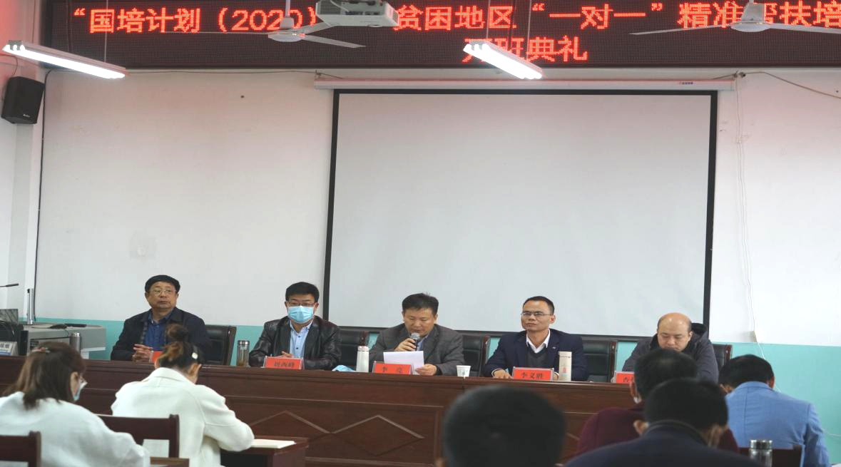为了全面落实教育部、财政部“国培计划”总体要求和2020年新部署新要求,安庆师范大学于2020年10月 31日上午8点, 分别在阜阳颖东区冉庙中心学校和临泉庙岔中心学校举行了“国培计划(2020)”——贫困地区“一对一”精准帮扶项目的开班典礼。此次开班典礼由查怀志、夏小庆主持,项目首席专家、教师教育学院党委书记曹长德教授、党委副书记许世平、项目负责人李义胜教授参加了典礼。