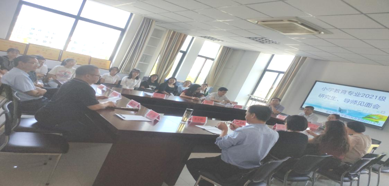 9月16日下午,beat365小学教育专业在J202会议室召开了2021级硕士研究生与导师见面会。学院院长吴云助、副书记许世平,校评建办主任黄兴帅、校教务处副处长汪洋,以及小学教育专业硕士生导师、2021级全体硕士研究生参加了会议。会议由小学教育专业负责人李义胜主持。