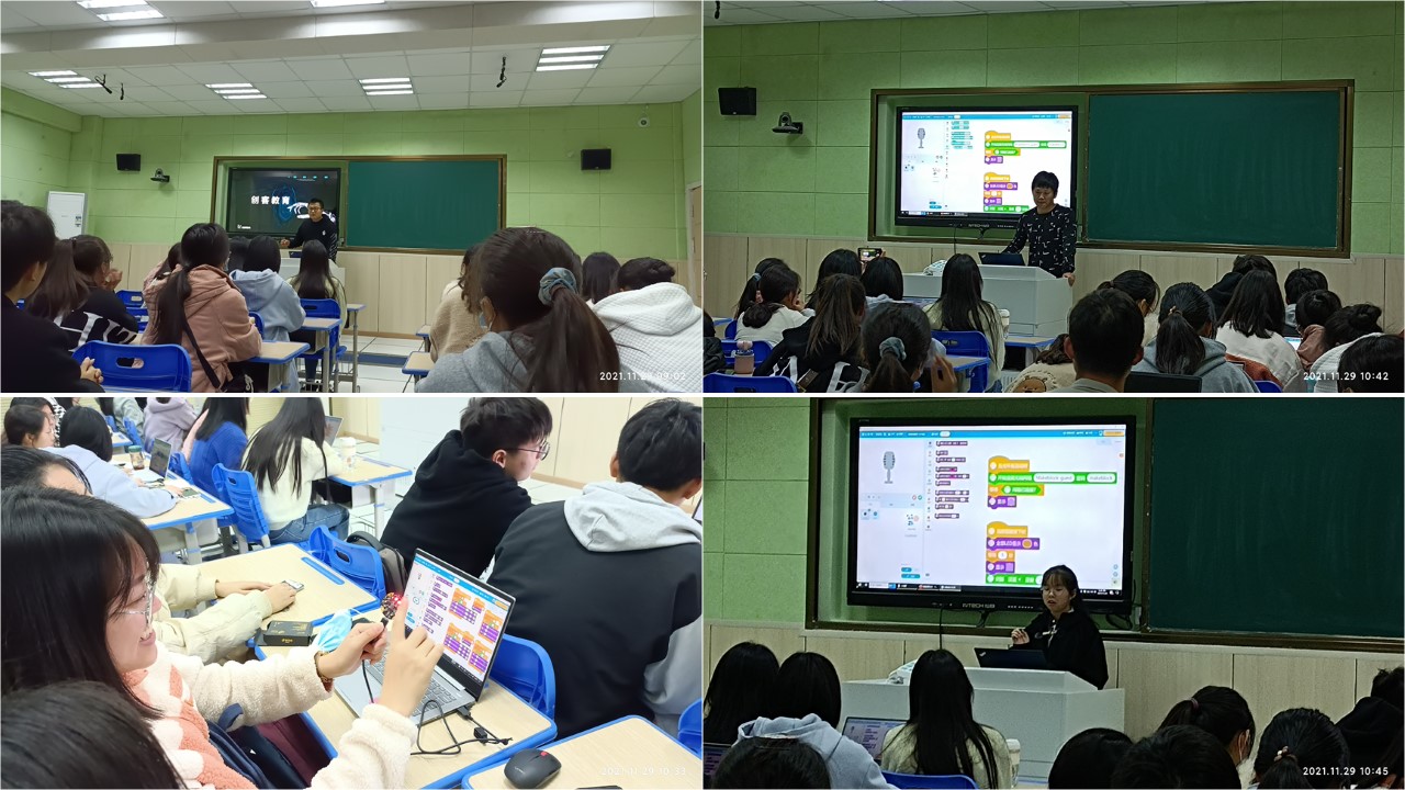全天连续三场报告,教育技术学专业学生认真听讲,积极发言,主动实践,踊跃互动,从中感悟到新课标下的课堂教学应是通过师生互动、生生互动,共同发展的课堂。同时也进一步感受到教育技术的魅力,开始重新审视个人的信息技术知识和能力。