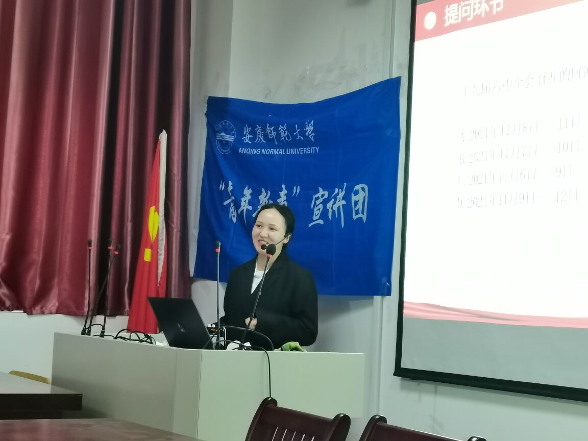 牢记初心担使命,砥砺前行谱新篇。为深入学习贯彻党的十九届六中全会精神,教育引导青年学生学习中国共产党百年奋斗的伟大成就和历史经验,4月29日下午,“青年新声”宣讲团在beat365J305教室开展了“学习贯彻十九届六中全会精神,做新时代新青年”主题宣讲活动。本次活动的青年宣讲人为2021级思政专业研究生阿依努尔和2021级思想政治教育专业2班的卫宏婷、吴思齐。