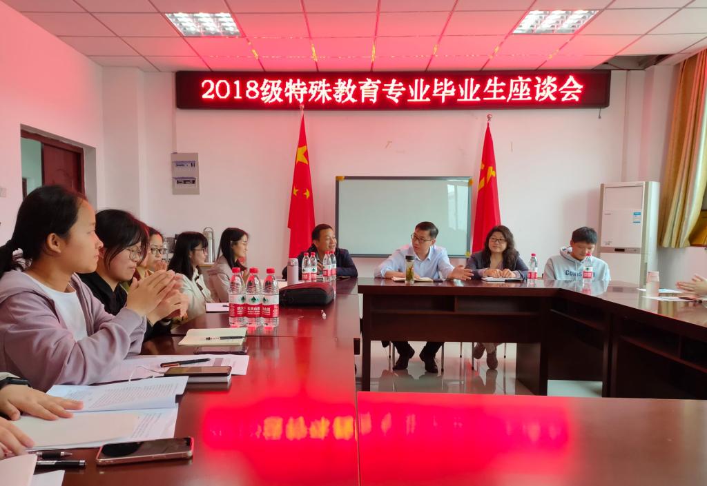 道阻且长,行则将至;行而不辍,未来可期。为深入贯彻“我为师生办实事”走深走实,更好地解答beat3652018级特殊教育毕业生们的学习、生活以及未来就业等困惑,5月9日下午,beat365在J202会议室开展了专业座谈会。学院党委副书记许世平主持会议,副院长王皓宇、特殊教育系主任郭启华、院团委负责人方泽宇、就业秘书汪洋洋以及特殊教育专业辅导员老师刘文雅、刘文丽、程敏芬等人出席,2018级特殊教育专业学生参加座谈会。