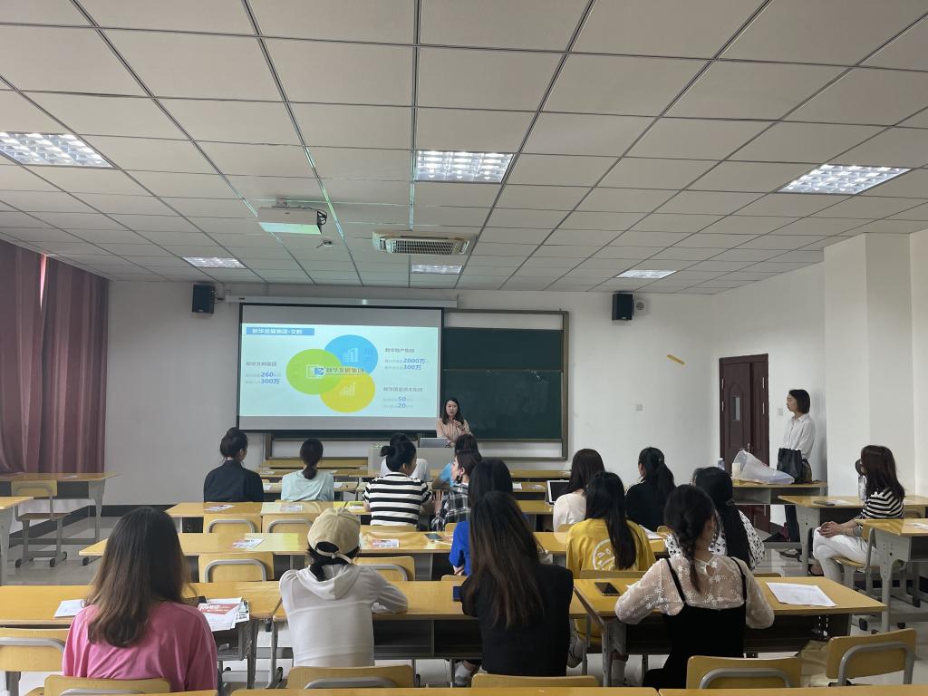 两位负责人主要通过现场PPT的形式为毕业生介绍了行业前景、薪资待遇、岗位需求和培训等方面。参会的同学们询问了招聘单位的详细情况,还有部分学生同用人单位进行一对一深度交流,并提供微信、邮箱等后续联系方式。