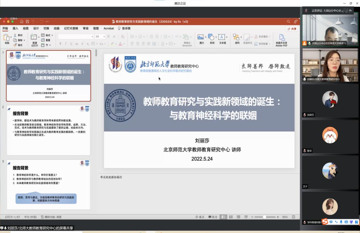 刘丽莎老师从教育神经科学、教育神经科学与教师教育结合的现状、教师教育研究和实践领域三方面进行深入阐述。