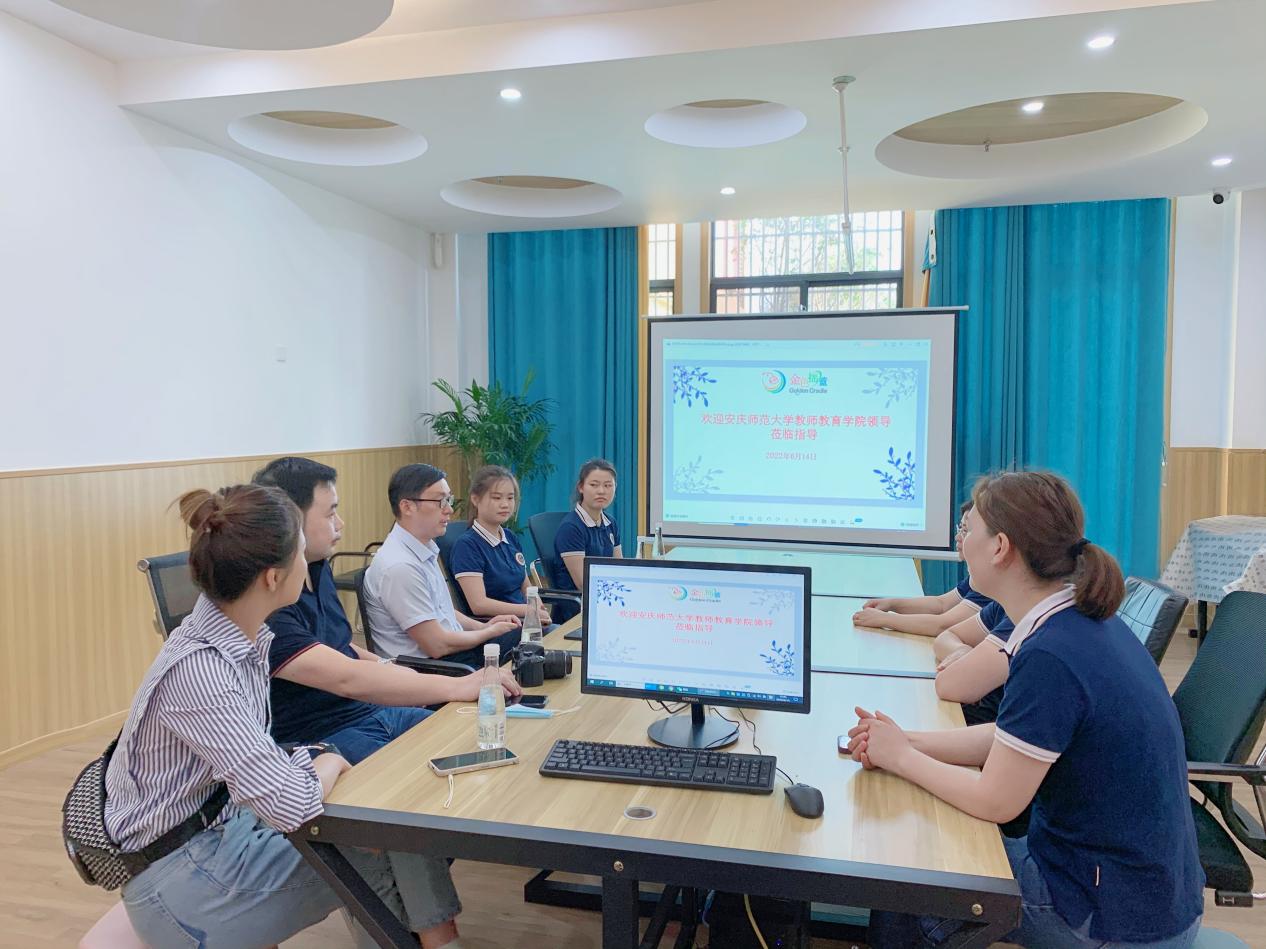 许世平一行实地考察了宿松阳光学校,听取了阳光学校的运营、人才培养模式、顶岗实习情况、就业需求情况,介绍了学习和学院的办学特色和优势,完成了与阳光学校共建安庆师范大学教育实习、就业基地的签约授牌,并与学校负责人就下一步的深度合作进行了深入交流。