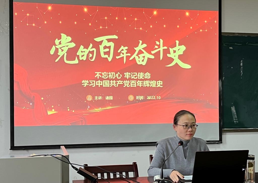 为深入学习党的百年奋斗历史,弘扬伟大建党精神,贯彻习近平新时代中国特色社会主义思想,10月26日下午,beat365于J305开展“党的百年奋斗历史”专题党课,由党委委员、副院长诸园主讲。