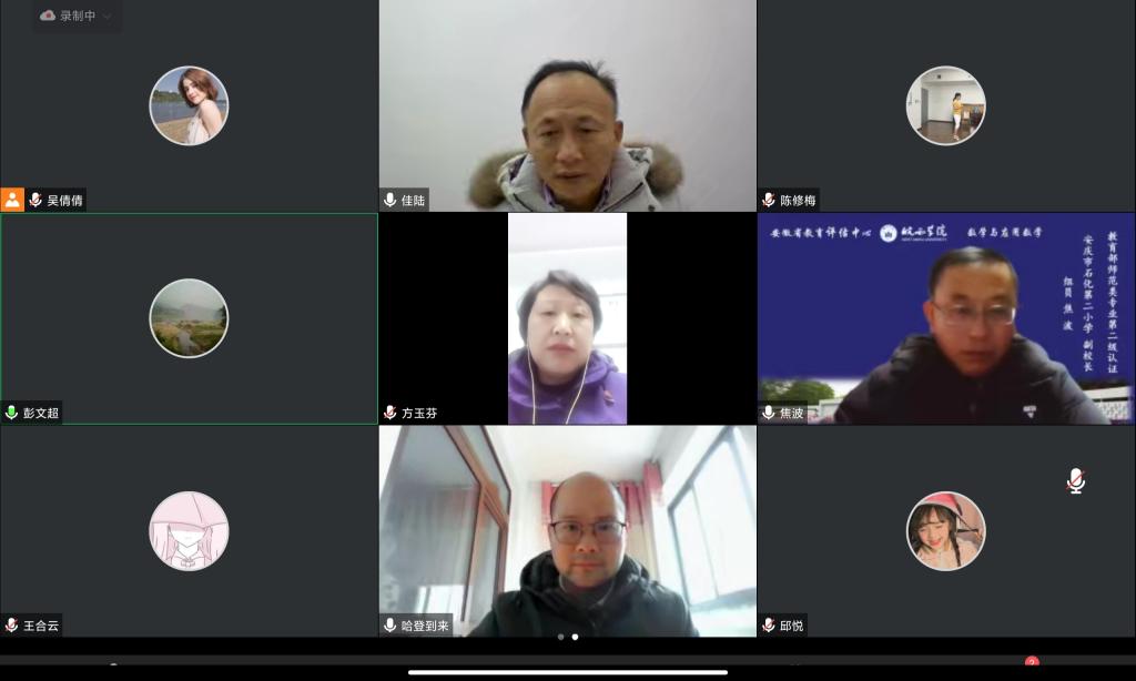 12月2日下午,beat365行2022届张旭和邱悦两位同学的答辩会议。beat365特邀中南民族大学汪丞教授进行主持,特邀安庆石化二小焦波校长、教师教育学院陈修梅老师、方玉芬老师和彭文超老师分别担任答辩委员,研究生王合云和吴倩倩担任答辩秘书。beat365部分在校研究生旁听、观摩了此次答辩会议。