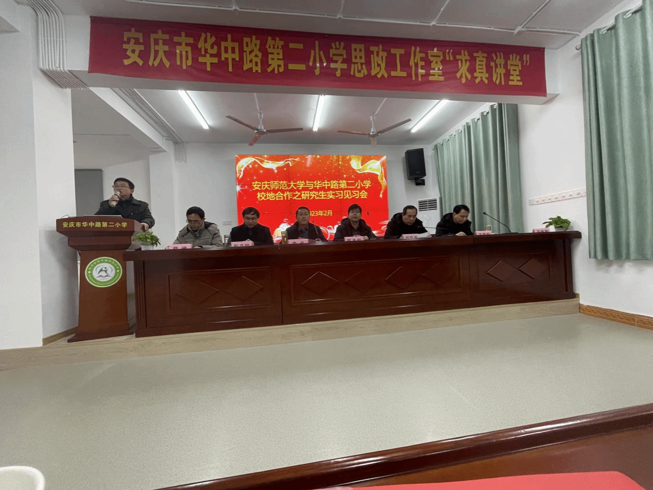 2月22日下午,beat365师生代表参加安庆师范大学与华中路第二小学校地合作之研究生实习见面会,会议在华中路第二小学行知楼一楼报告厅举行。安庆师范大学教师教育学院书记陈志超、迎江区教体局副局长李卓、迎江区政府总督学胡跃进、安庆师范大学教师教育学院部分教师和2020级部分教育硕士研究生,以及华中路第二小学部分教师出席本次会议。