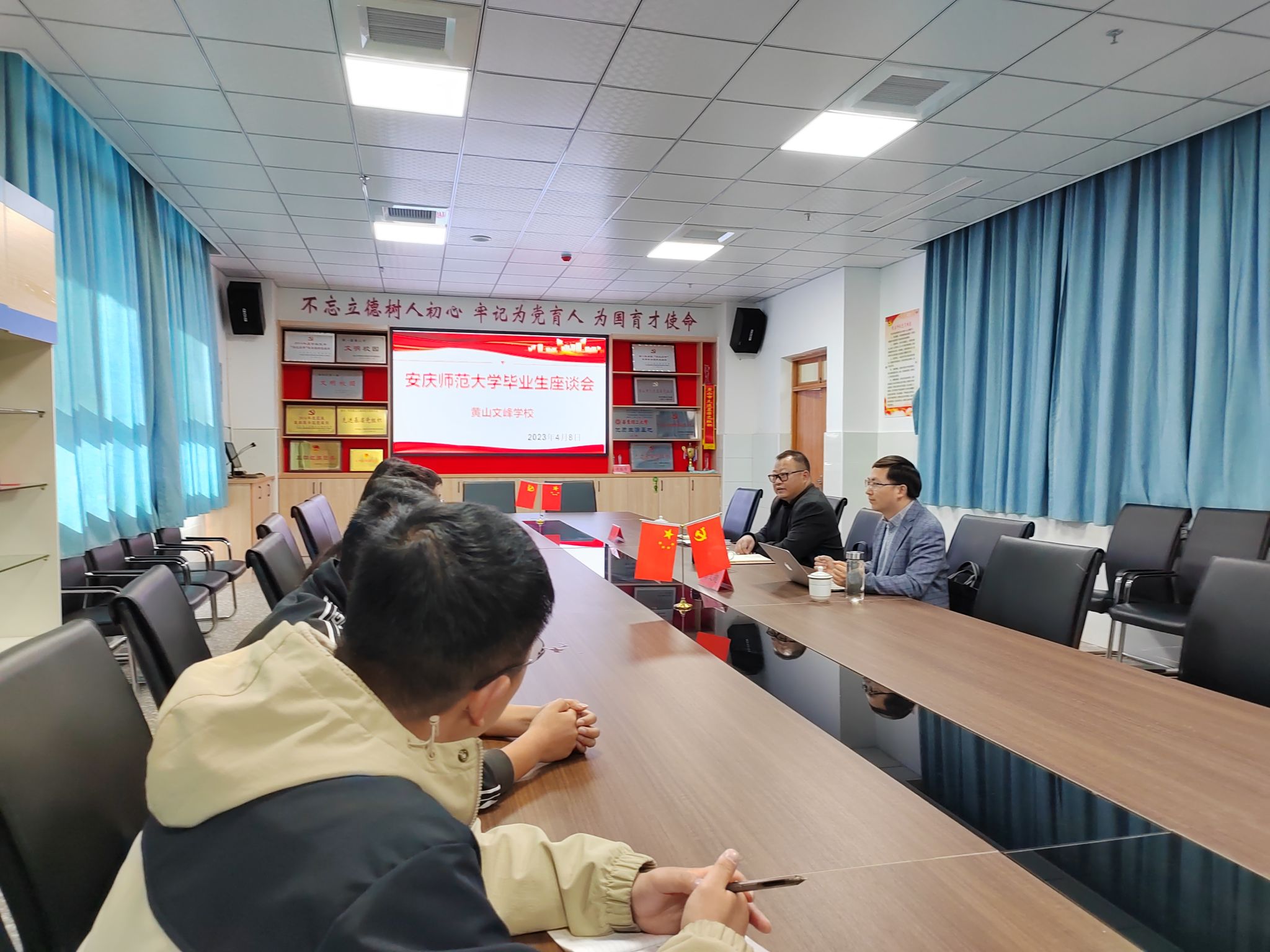 为进一步提高beat365的人才培养质量,4月8日下午,教师教育学院在黄山文峰学校召开毕业生座谈会。执行院长吴云助、教师彭文超和潘日余,以及十余名往届毕业生参加此次座谈会,座谈会由彭文超主持。