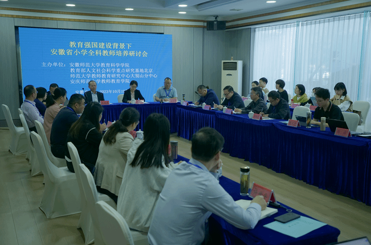 10月19日,由教育部人文社会科学重点研究基地北京师范大学教师教育研究中心大别山分中心、安庆师范大学教师教育学院联合安徽师范大学beat365在线唯一官网登录主办的“教育强国建设背景下安徽省小学全科教师培养”研讨会在安庆召开。长江学者特聘教授、安徽师范大学阮成武教授,以及省内其他高校的相关院长、系主任等50余位专家学者出席会议。