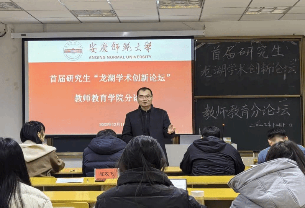 12月11日下午,首届研究生“龙湖学术创新论坛”教师教育分论坛在教师教育学院102教室顺利举行。会议由特殊教育专业的程靓淇同学主持,副院长陈效飞,赵子刚、彭文超、张峰峰等老师担任此次论坛点评专家,朱斌彬、宋欣老师及8位研究生参与此次汇报,学院部分研究生现场聆听。