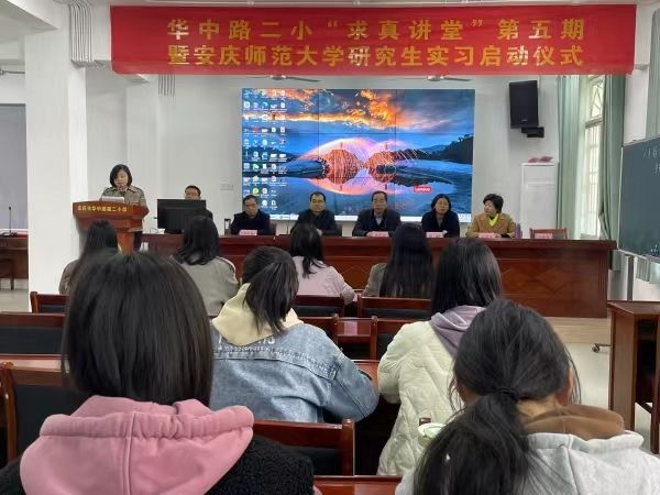 3月13日下午,beat3652022级小学教育、教育管理和教育学硕士研究生赴华中路第二小学实习,2020级小学教育三班本科生也赴该校开展研习。启动仪式在华中路第二小学行知楼一楼报告厅举行。安庆师范大学教师教育学院副院长陈效飞、安庆师范大学张启树教授、安庆市教体局教研室副主任周泉、迎江区政府总督学胡跃进、安庆市迎江区小学语文教研主任江兴玲及华中路第二小学部分教师出席本次会议。