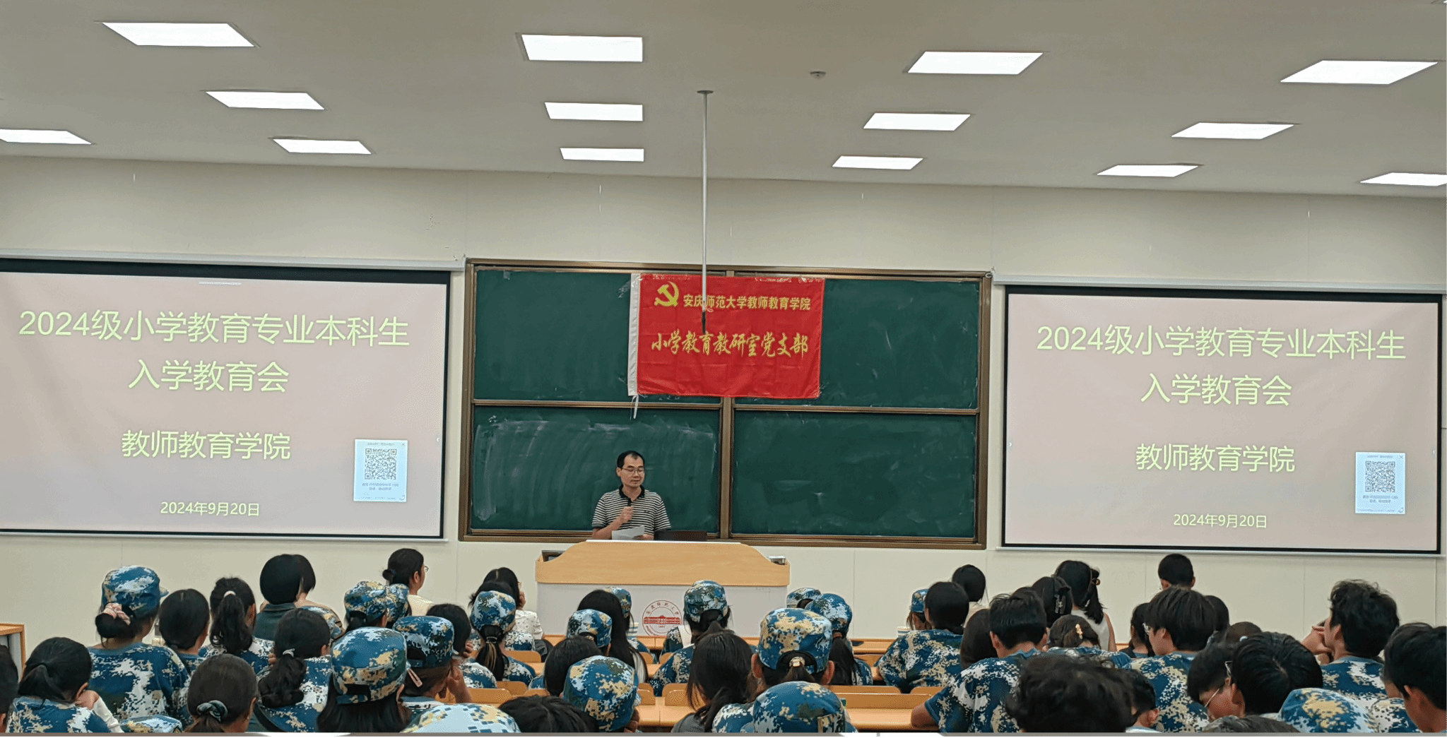 为帮助2024级小学教育专业本科生熟悉适应大学生活,合理做好规划,9月20日,小学教育教研室党支部于C108举行2024级小学教育本科生入学教育会。支部书记陈效飞、支部党员教师、毕业生代表、学生代表、辅导员和2024级小学教育专业全体新同学参加了此次会议。会议由陈效飞主持。