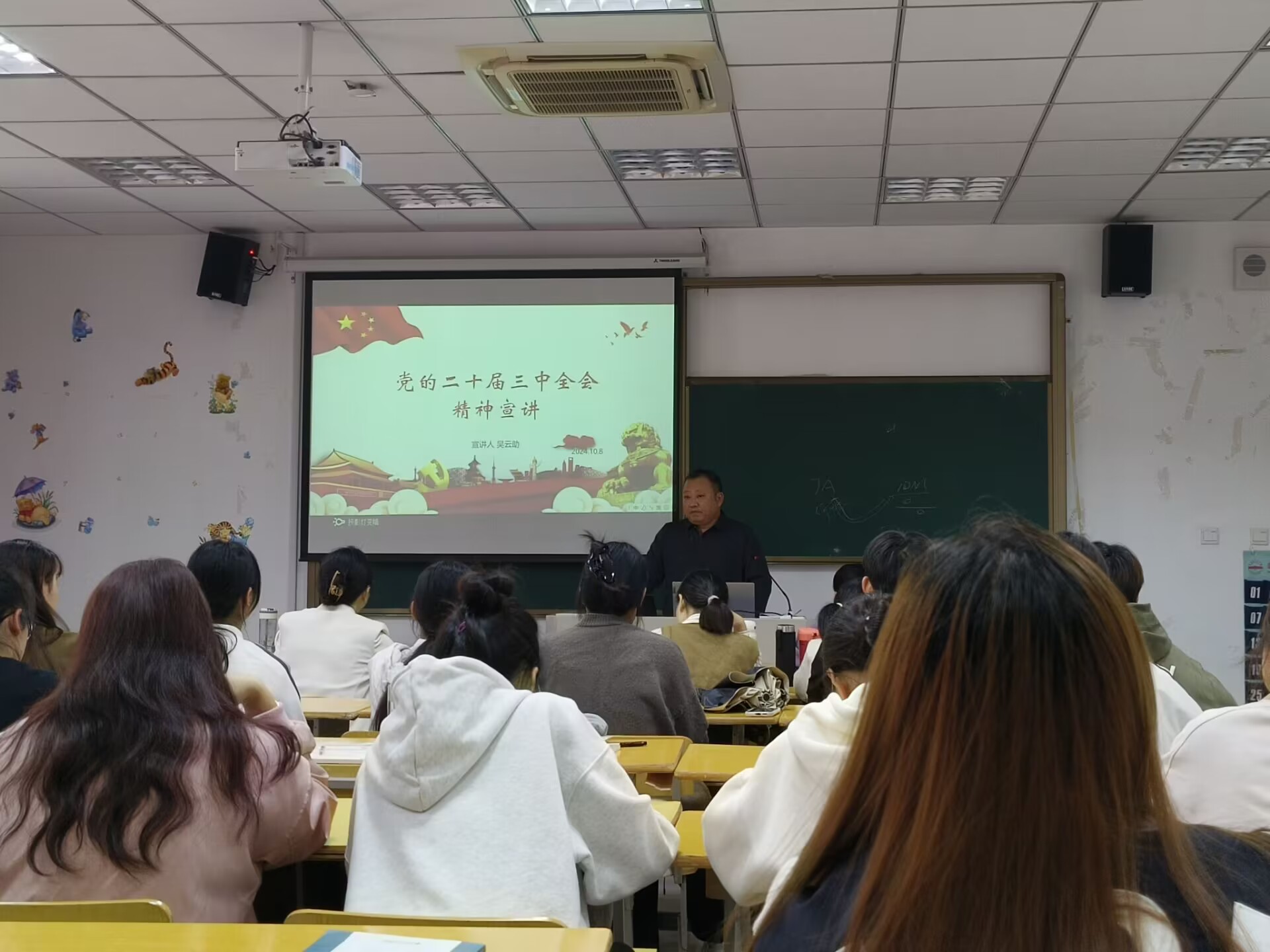 2024年10月8日,教师教育学院院长吴云助为学前教育教研室党支部及学生学前教育党支部开展党的二十届三中全会精神宣讲活动。