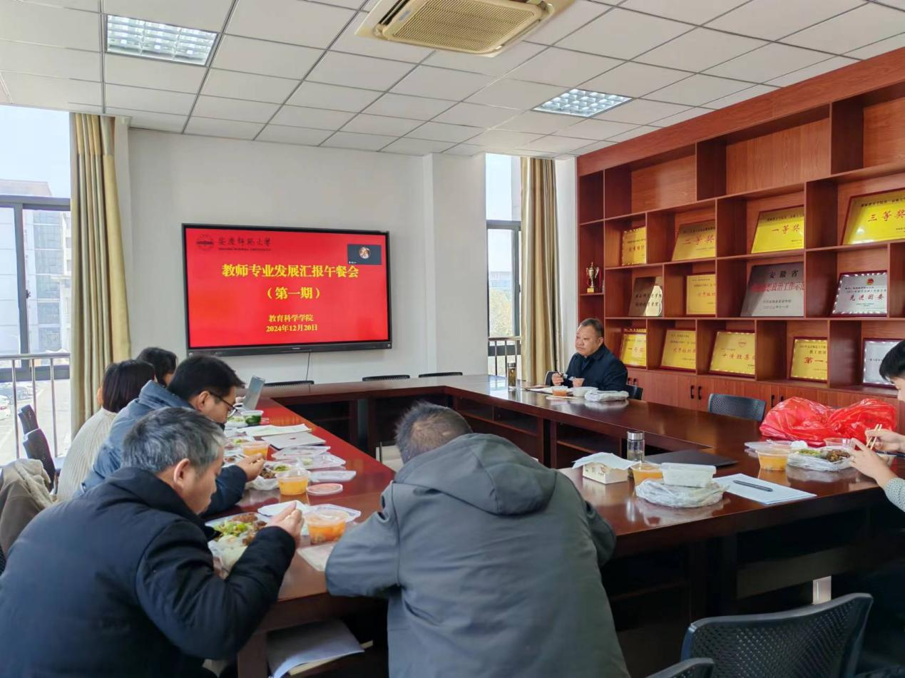 12月20日中午,beat365在线唯一官网登录举行第一期教师专业发展汇报午餐会,院领导吴云助主持会议,公共教育学教研室全体教师参会。