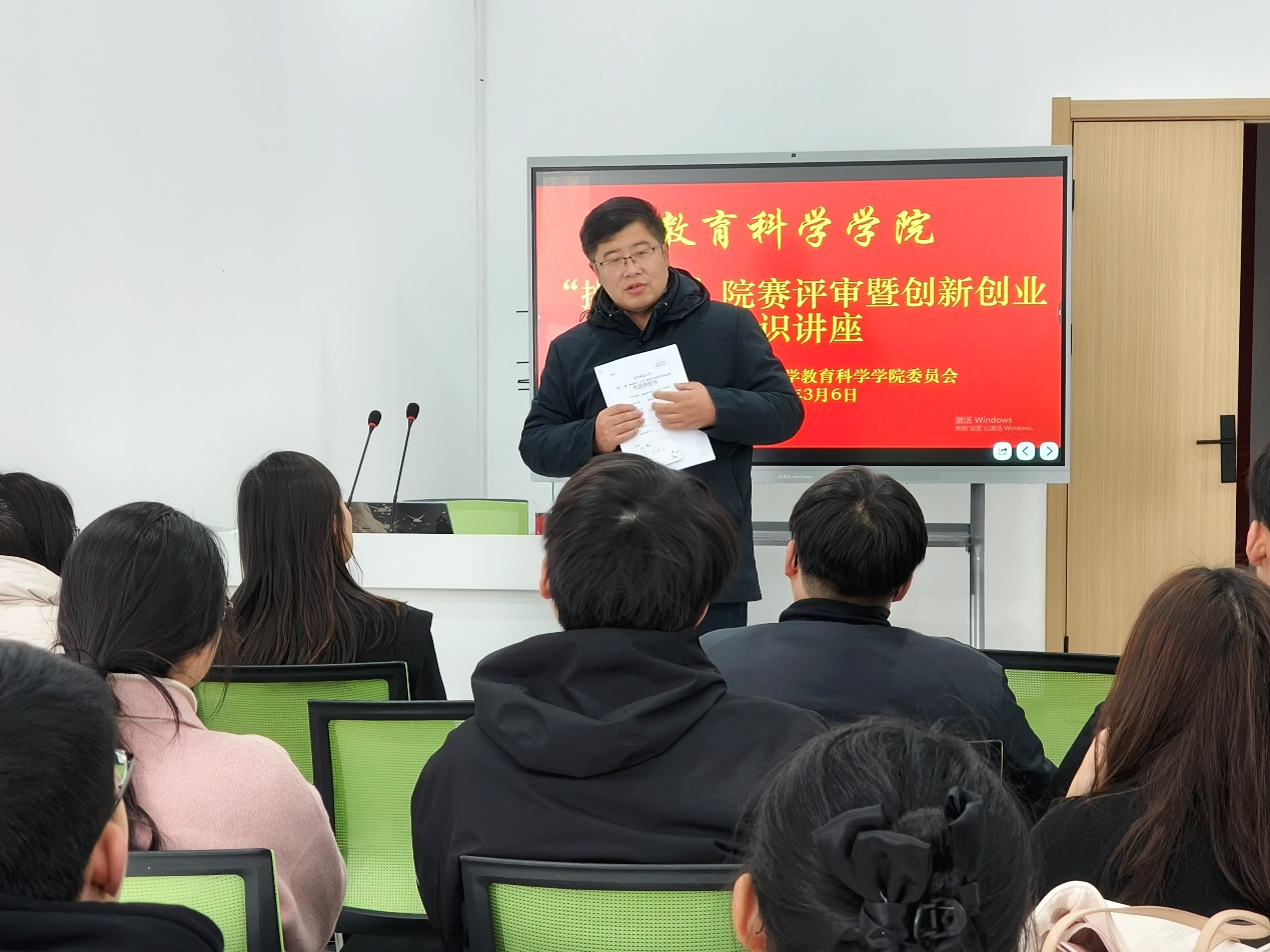 3月6日,beat365于一站式学生社区阶梯教室开展“挑战杯”院赛评审暨创新创业知识讲座,由校团委副书记严峻主讲,院团委副书记姚强诚主持、多名指导教师、辅导员及百名学生观摩学习。