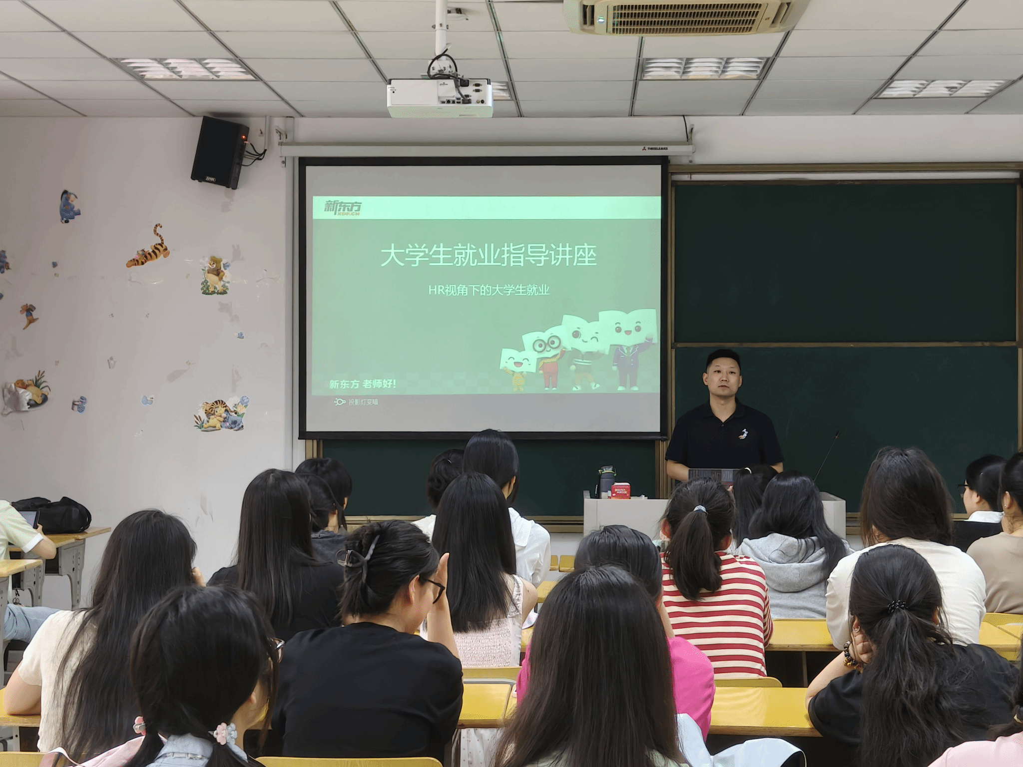 谢杨海结合新东方人才招聘情况,从就业形势研判、简历制作、面试技巧三方面详细指导。他剖析了就业市场趋势、热门行业动态,强调简历制作要突出优势,分享了面试的应对策略,此外还介绍了新东方暑期实习、顶岗支教实习及就业岗位的相关情况,与同学们积极交流,现场气氛活跃。同学们表示讲座针对性强,收获颇丰。