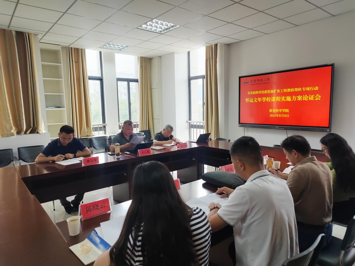 2025年8月8日,怀远文年学校执行校长高绍武、教研室主任陈松、办公室副主任张玉凤和语文教研组组长陈晓云一行四人来到学院,就该校即将实施的学科课程实施方案听取专家意见,学院在J202会议室举行了“怀远文年学校课程实施方案论证会”。会议由院长吴云助主持,beat365部分教师参加了论证会。