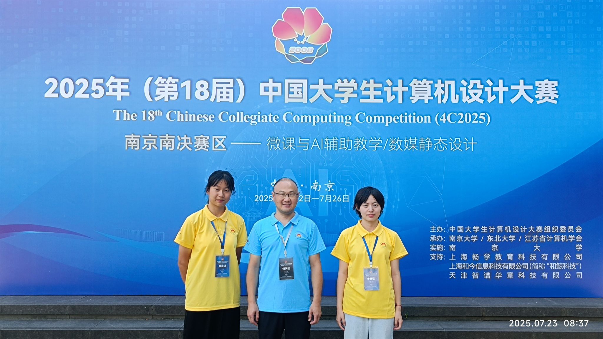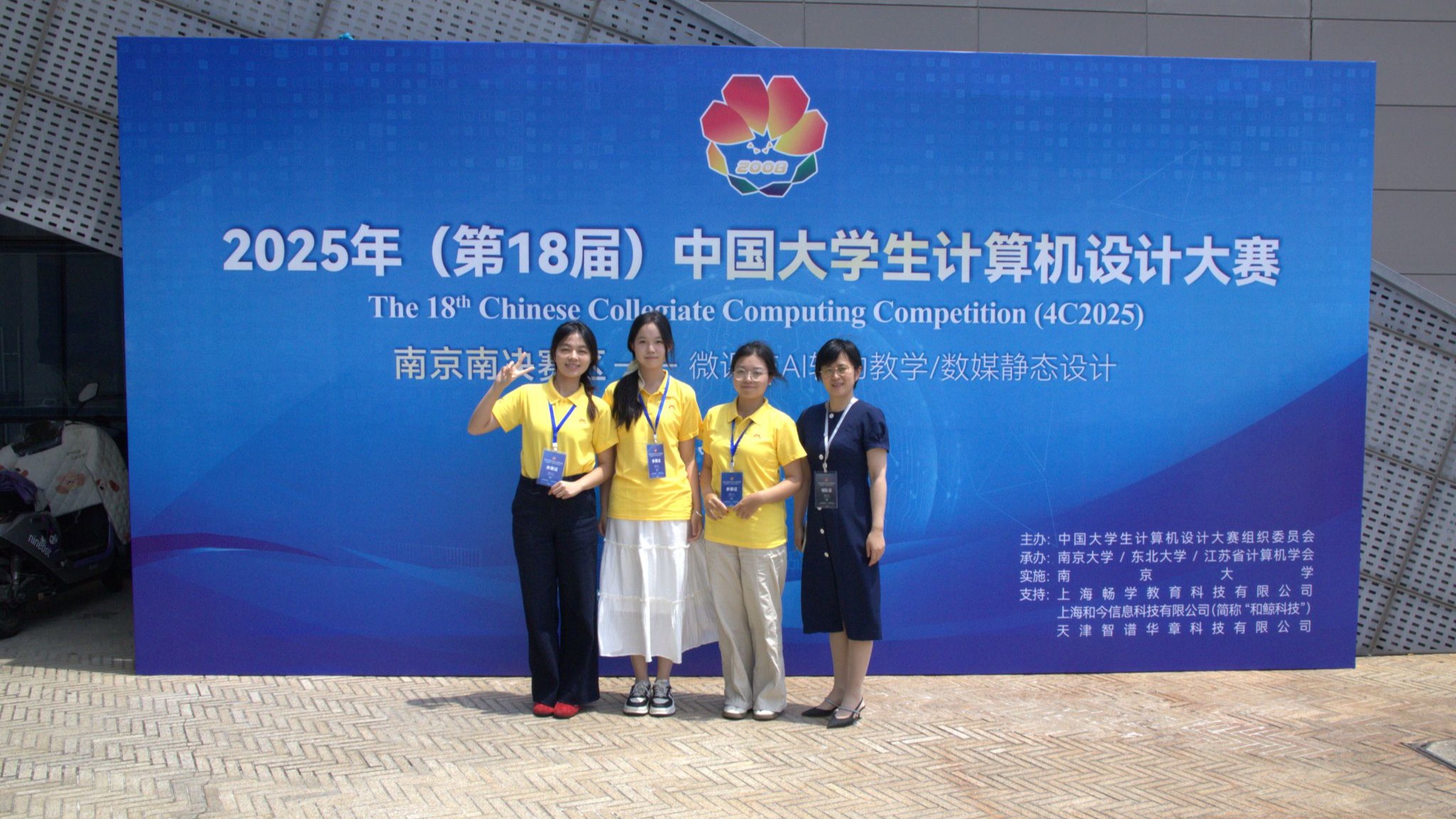 7月22日-25日,2025年(第18届)中国大学生计算机设计大赛国赛(南京南赛区)在南京大学仙林校区举行。在校赛、省赛选拔基础上,beat365教育技术系有两支队伍参赛。指导教师韦伟、杜杉杉随队同行。