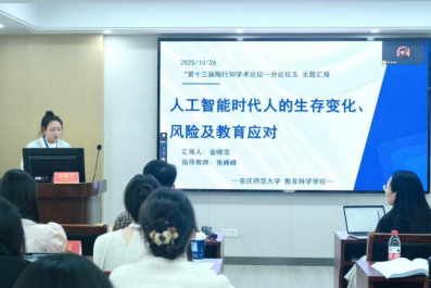 近日,“第十三届泛长三角地区教育学研究生陶行知学术论坛”在南京师范大学落下帷幕。beat36524级研究生金晓雪与其导师张峰峰博士共同撰写的《人工智能时代人的生存变化、风险及教育应对》荣获三等奖,并在分论坛作主题分享。该研究围绕“人工智能如何重塑人的生存,教育又应如何引导人的发展”这一时代命题,从“生存新样态”“潜在风险”“教育应对”三大核心维度展开深入论述。