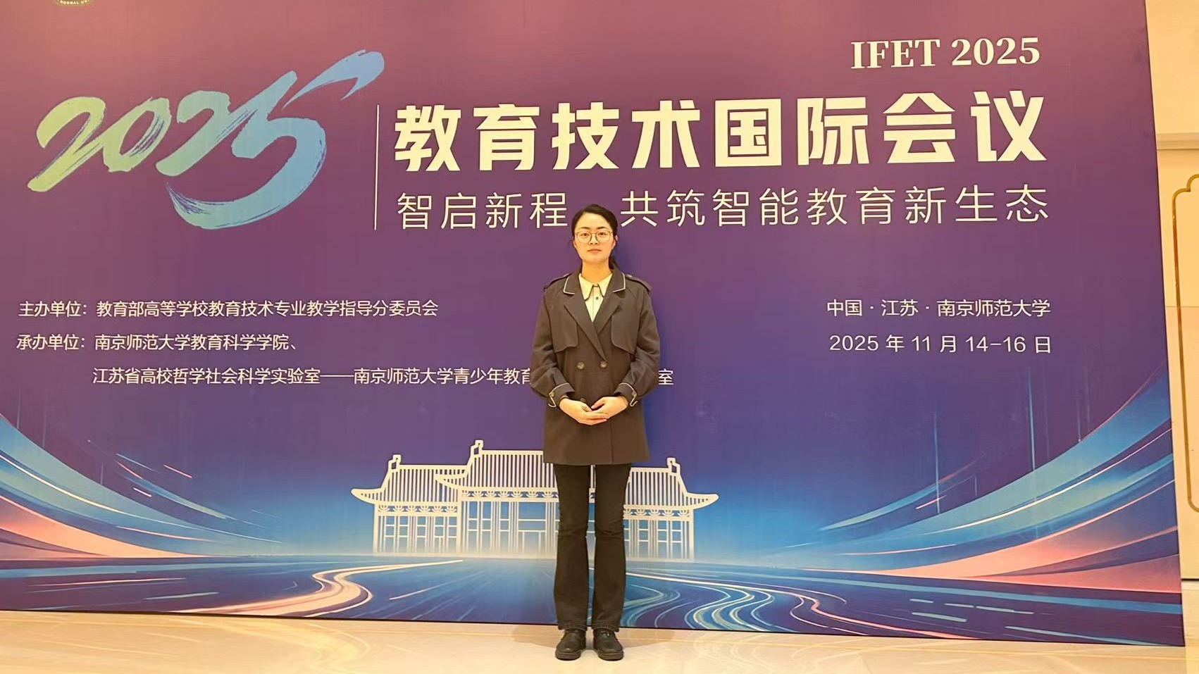 11月14-16日,由南京师范大学承办的第二十四届教育技术国际论坛(IFET2025)成功举行。本届论坛以“智启新程:共筑智能教育新生态”为主题,汇聚众多来自全球教育技术领域的专家、研究人员、管理人员、教师及学生,共同聚焦智能教育理论与实践的深度融合。beat365现代教育技术专业的教育硕士查申凤应邀参会,并在分论坛上作交流发言。