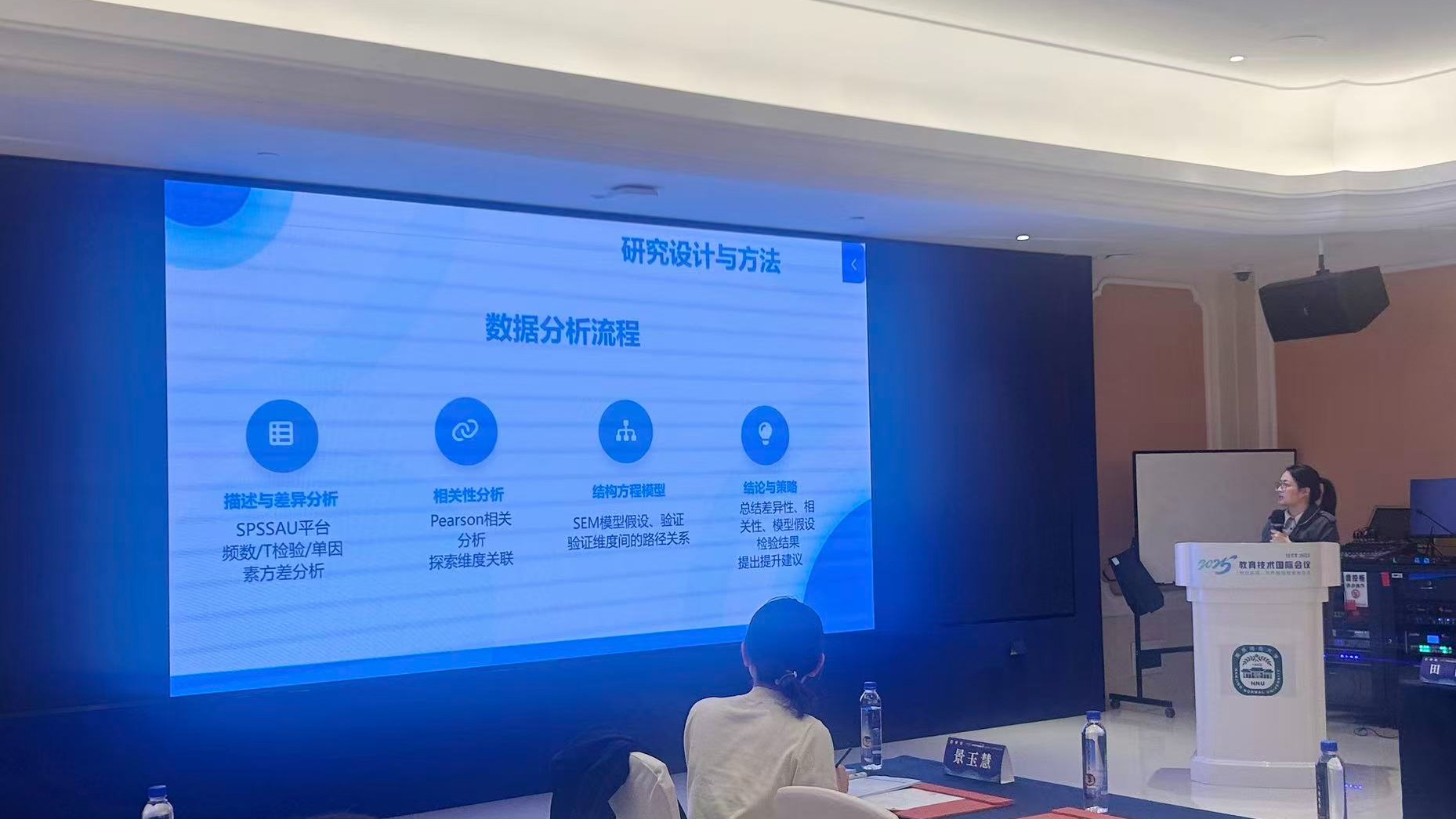 在智能教育学术分论坛,查申凤以《安徽省小学科学教师数字素养影响因素的研究》为题,从研究背景与目的、研究设计与方法、主要研究结果、结论与建议四个维度展开汇报,其研究逻辑缜密、数据详实,为探索小学科学教师数字素养提升路径提供了实践参考,赢得现场专家与同行的认可和积极点评,彰显了我校研究生的科研素养与学术潜力。