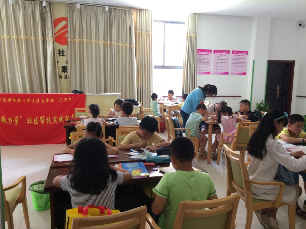 7月11日至18日,教育学院“微力量——社区帮扶”实践服务团在安庆市宜秀区芭茅巷社区针对留守儿童、困难儿童开展了“暑假作业周计划”社会实践活动。