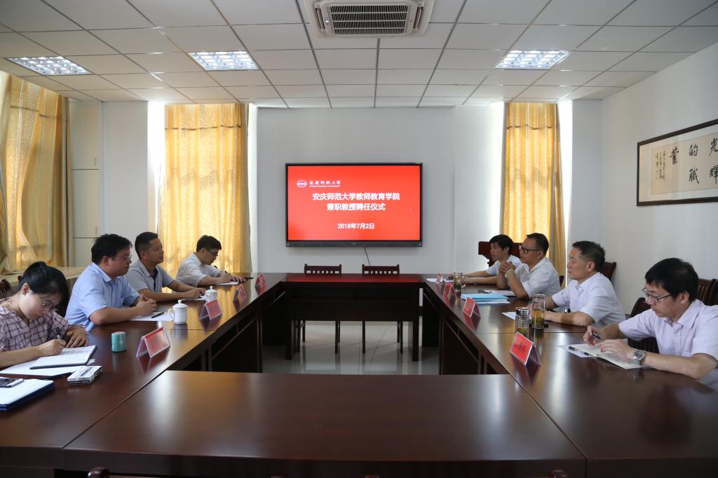 曹长德书记在讲话中表示,教师教育学院正在全面爬升阶段,面对新形势、新任务,需要在学科专业建设上发力。感谢两位教授不辞辛苦、万里迢迢来到安庆师范大学,愿以此兼职教授聘任为契机,进一步加深合作广度和深度,实现合作共赢。