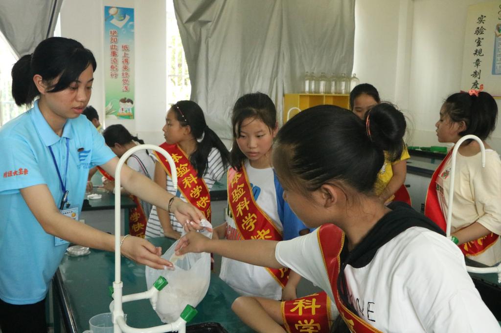 植物种子发芽需要什么条件?植物种子是如何发育成植物的?对于科普知识,你了解多少呢?7月21日,安庆师范大学教师教育学院“心手相牵 阳光童行”实践服务团的志愿者们来到安庆市大观区十里中心学校,给该校百名困境儿童科普了各种知识,并教会了他们如何做“人工湿地”科学实验。