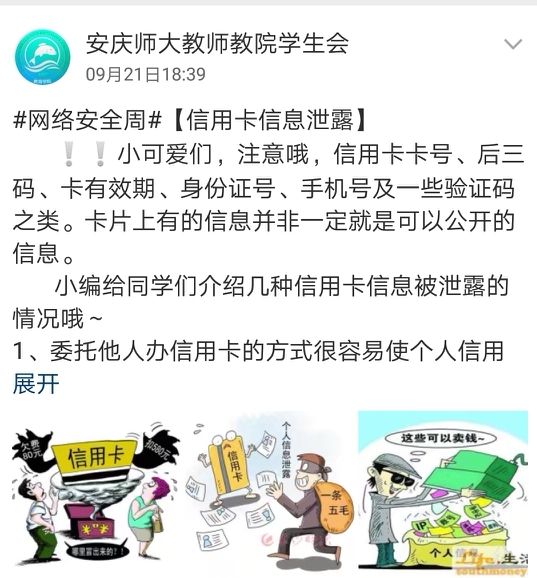 在许书记的指导下教师教育学院充分利用线上宣传的优势,在安庆师大教师教院学生会官Q上进行每日网络安全宣传,每天向同学们推送网络上存在的不同形式的安全隐患问题以及如何防范这些安全隐患等知识,提高同学们网络安全意识。线下方面,教师教育学院学生会特意制作一条印有“便利生于指尖,安全牢记心间”的横幅挂在同学们每天进出的院门口,并且由宣传部制作的“谨防网络诈骗”主题的宣传画放置在大厅显眼位置。与此同时,网络安全宣传片在教师教育学院一楼大厅大屏幕上循环播放。这样的布置安排,既可以让同学们看见网络安全的宣传力度,又可以使网络安全问题深入人心,让同学们自觉遵守信息安全管理有关法律法规,自觉抵制网络低俗之风,净化网络环境,积极营造网络文化新风。