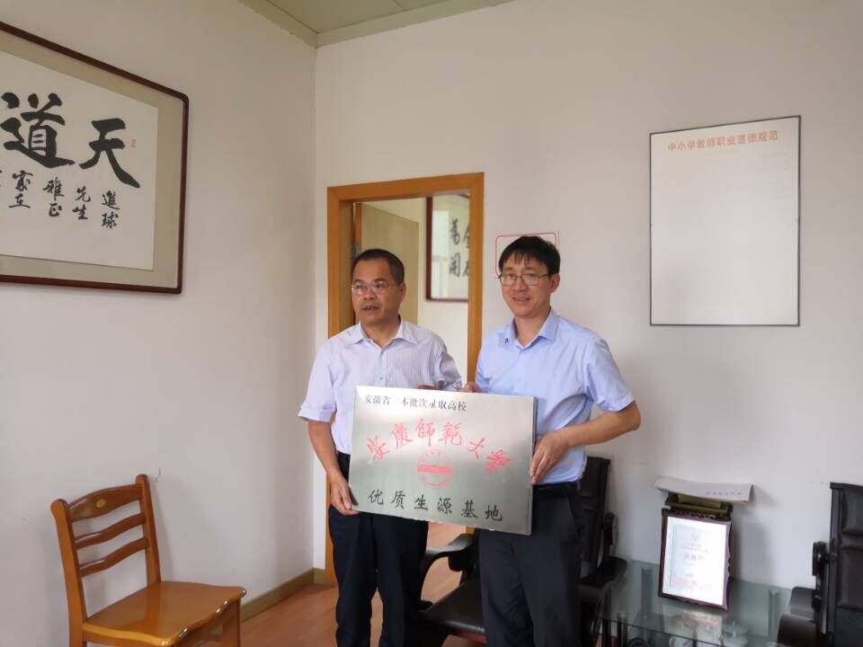 按照学校2019届新生招生宣传工作部署,6月18-19日,beat365党委副书记许世平带领李义胜、查怀志、陈安定老师一行4人赴黄山市的休宁县和祁门县进行招生宣传。在休宁中学和祁门一中,许世平一行与学校领导、老师进行了座谈,详细介绍了我校今年的招生政策,并特别对beat365国家定向培养全科型乡村小学教师的小学教育专业做了说明,欢迎学生积极报考我校。两校领导表示会把我校招生的优惠、奖励政策向高考学生、家长宣传到位。许世平还对《安庆师范大学优质生源基地合作协议书》的主要内容做了介绍,休宁中学校长李顺宝、祁门一中校长张进球在协议书上签字,许世平代表学校授予两所学校“安庆师范大学优质生源基地”牌匾。