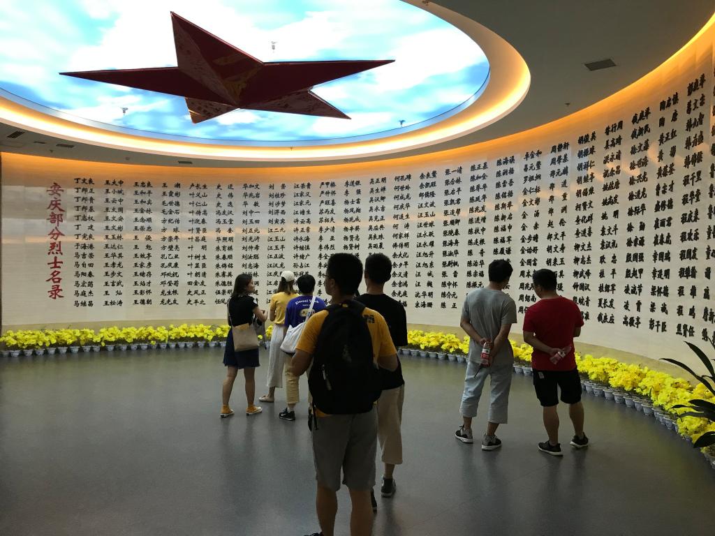 首先支部全体党员参观了安庆市革命烈士纪念馆,展馆内祭奠了安庆市先后在此集中安葬411名烈士,这些烈士分别是在第一次国内革命时期、土地革命时解、抗日战争时期、解放战争时期以及社会主义建设时期(抗美援朝战争,对越自卫反击战,抗洪抢险等)中牺牲的。参观的过程中党员同志们目睹了那一件件沐浴过昔日战火的实物,仰望那一张张浸染过岁月风云的照片,细读那一个个铭刻着英雄事迹的石文,大家仿佛走进了那不平凡的战争年代,走进了及其艰苦的战争环境。