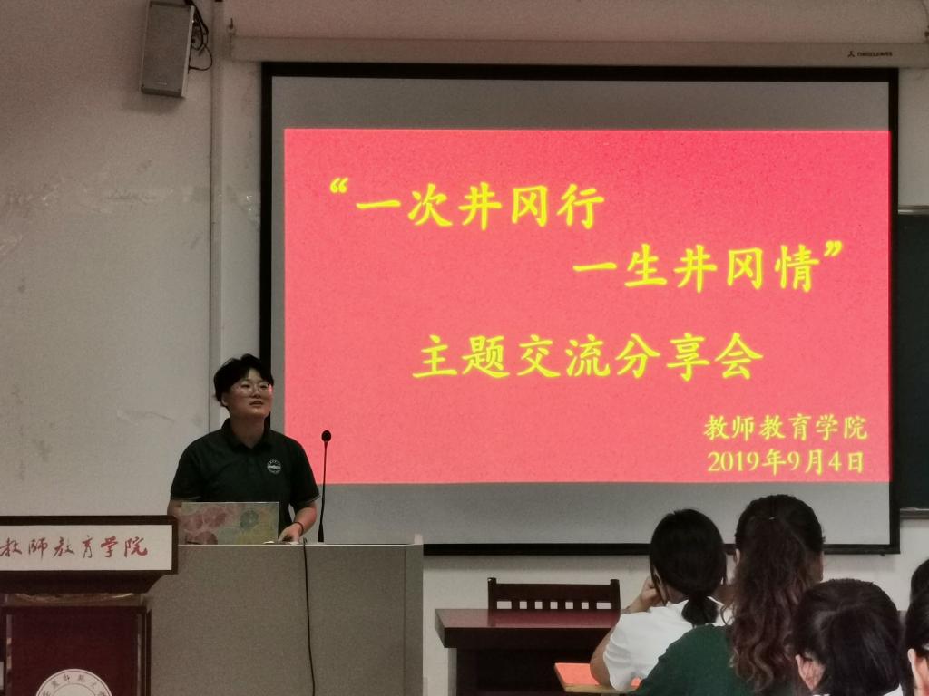 94学生小学教育党支部开展党日活动,此次活动一次井岗行,一生井冈情”为主题的井冈山革命精神交流分享会,由支部预备党员汪晓湉、积极分子庞瑞月分享她们在井冈山培训中的学习内容、实地训练,并且交流了培训心得。
