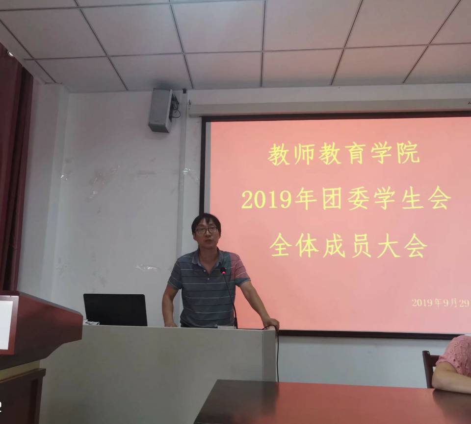 9月29日中午,教师教育学院召开团委学生会全体成员大会,学院党委副书记许世平出席会议,学院辅导员老师及学生会全体成员参加会议。