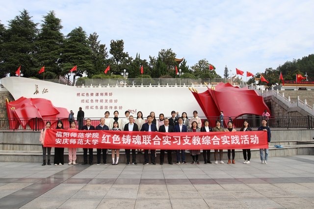10月27日至29日,我校教师教育学院组织教育硕士和本科生代表,开展“红色铸魂”教育见习综合实践活动,信阳师范学院教师教育学院师生代表共同参与了此次活动。两校师生共30余人在3天时间里深入大别山革命老区的河南新县和商城、安徽金寨等地,重温红色历史,铸就红色“师魂”。