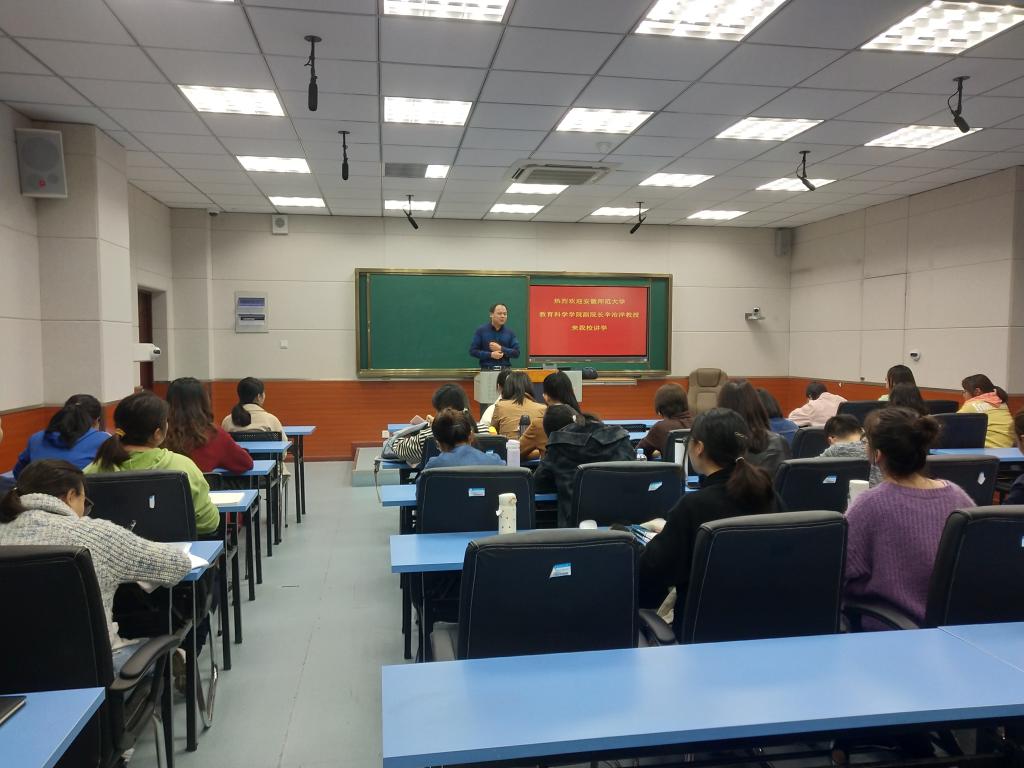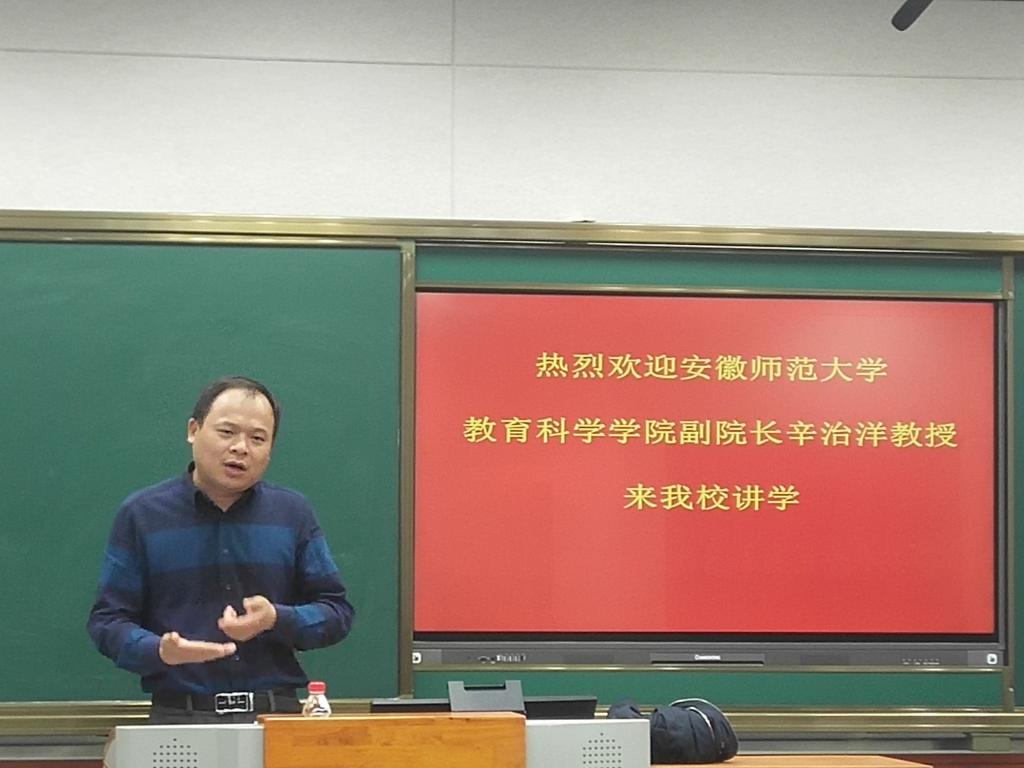 11月7日下午,应教师教育学院邀请,安徽师范大学beat365在线唯一官网登录副院长辛治洋教授在J511教室做了一场题为“例谈教育科研的问题与方法”学术讲座。学院全体研究生及部分教师聆听了讲座,此次报告由教师教育学院副院长汪洋主持。