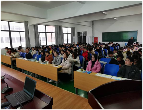 之后,全体师生聆听了大关中心小学叶助胜校长的报告——《乡村教育更有诗意和远方》。他被誉为“最美乡村教师”,拒绝平庸,追求卓越是他的人生信条。从报告中,我们感受到他对乡村教育倾注的浓浓情意。这是一种人文情怀,也是一份无私伟大的爱。叶助胜校长从“守望乡村教育,只要将心向明月,乡村明月照前程”、“守望乡村教育,人面桃花相映红,桃花年年笑春风”、“守望乡村教育,衣带渐宽终不悔,甘愿为他憔悴人”、“守望乡村教育,扶持新竹高旧竹,一叶衬托万山红”、“守望乡村教育,此情可待成追忆,当时只道是寻常”等五个方面向我们介绍了一名乡村教师应具备的素养和能力。他用朴实的口吻讲述了自己坚守乡村教育的点点滴滴,我们看到的是成就,是希望,还有这背后默默付出的汗水与辛酸。