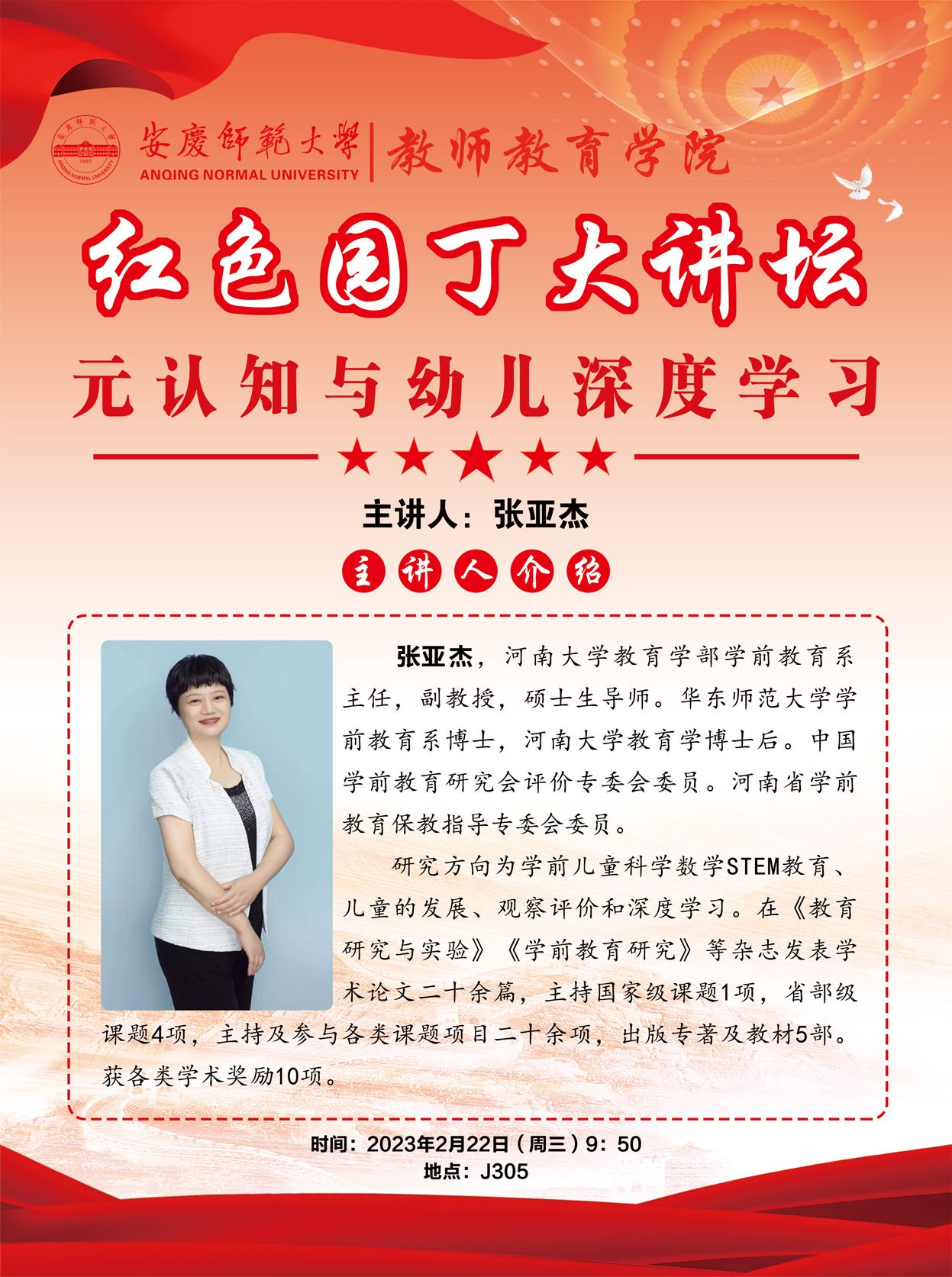河南大学教育学院学前教育系主任张亚杰副教授应邀在“红色园丁大讲坛”作报告