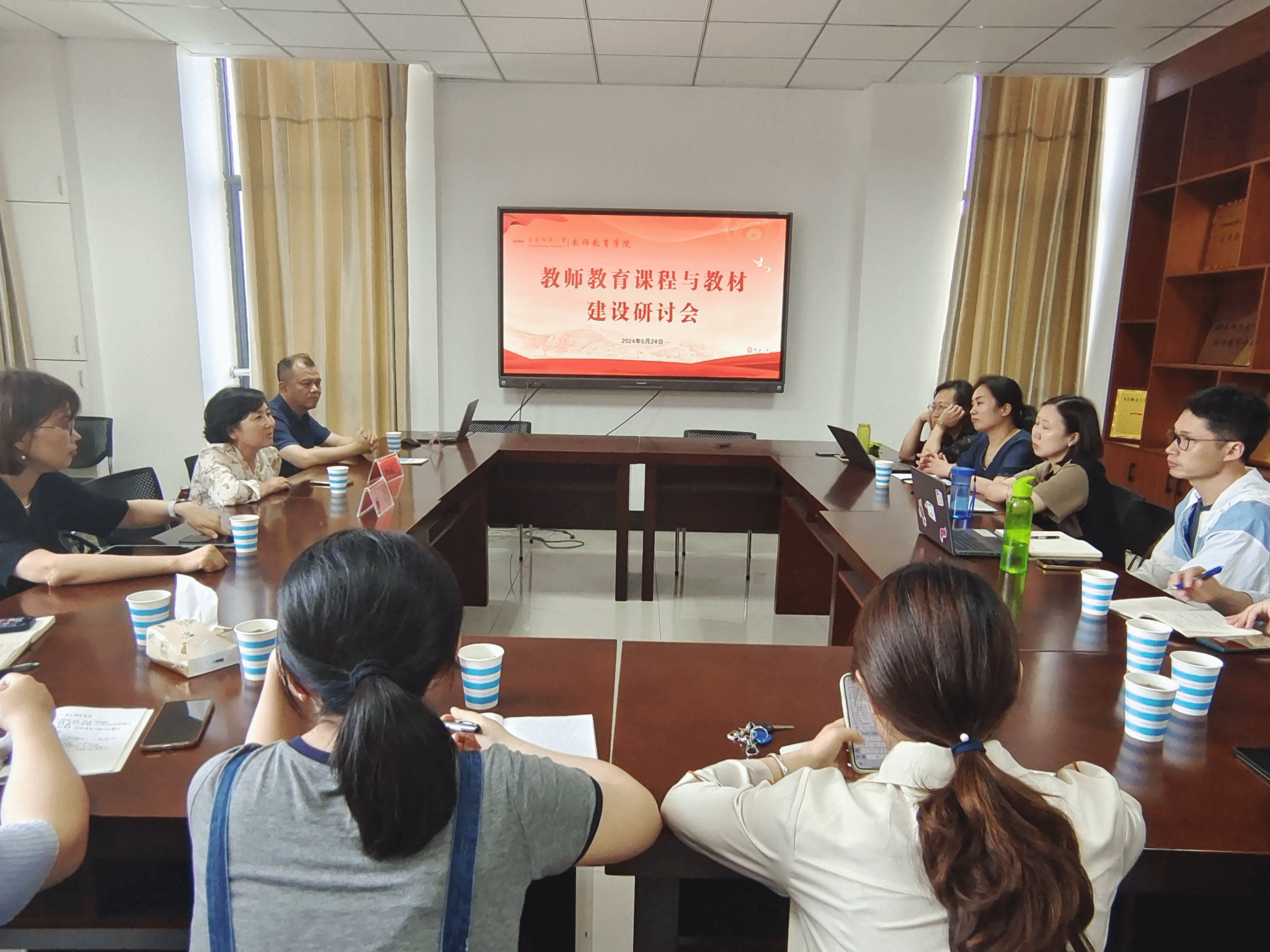 5月24日,北京师范大学出版集团安徽大学出版社总编辑郭兴举、社长刘德萍、副社长钟蕾应教师教育学院邀请参加教师教育课程与教材建设研讨会。教师教育学院副院长诸园主持会议,该院部分教师代表参加研讨会。