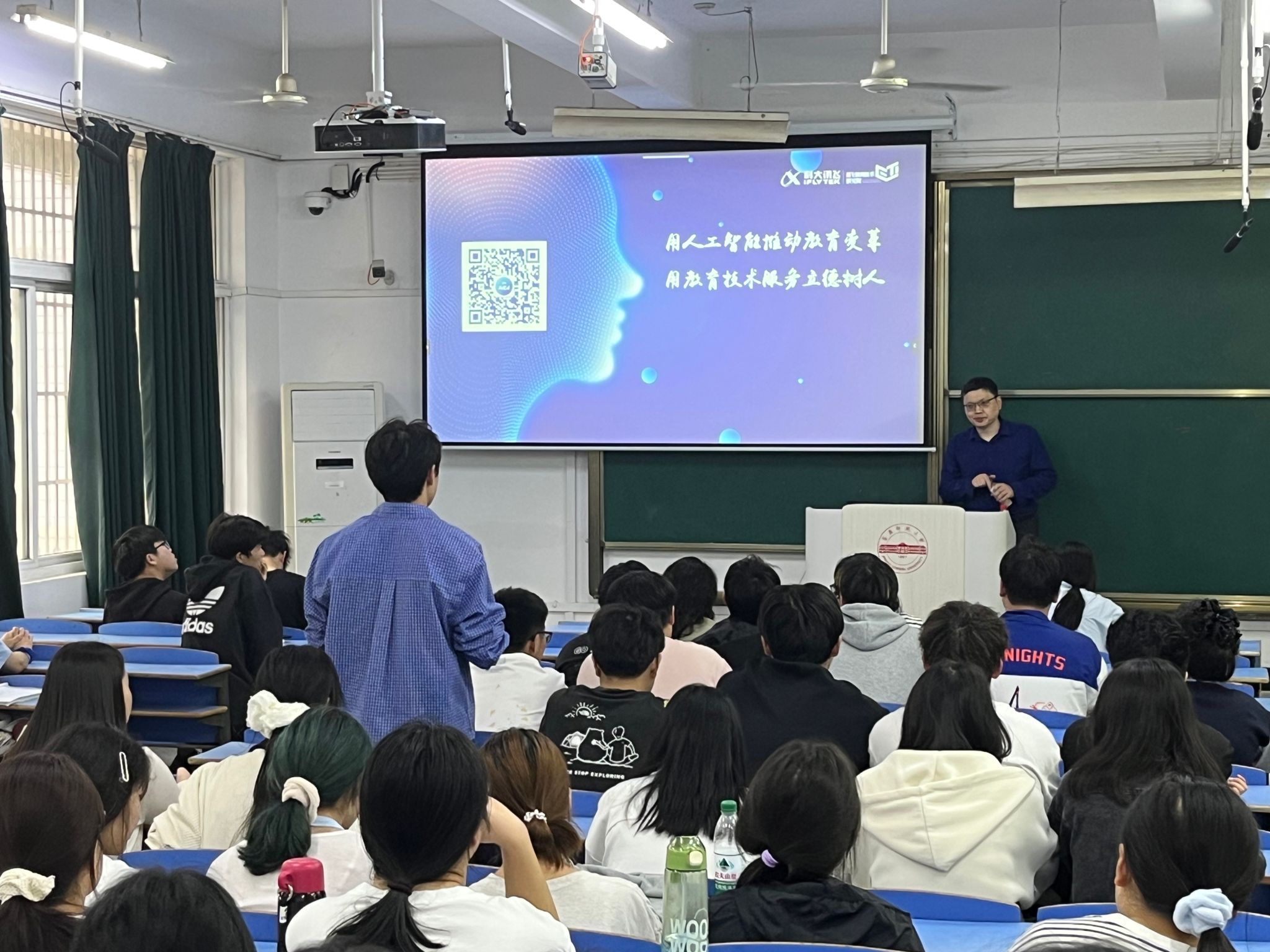 会后,现场学生还就生成式AI推理生成教学设计的背后逻辑、生成式AI是否会取代教师等话题与专家进行讨论交流。