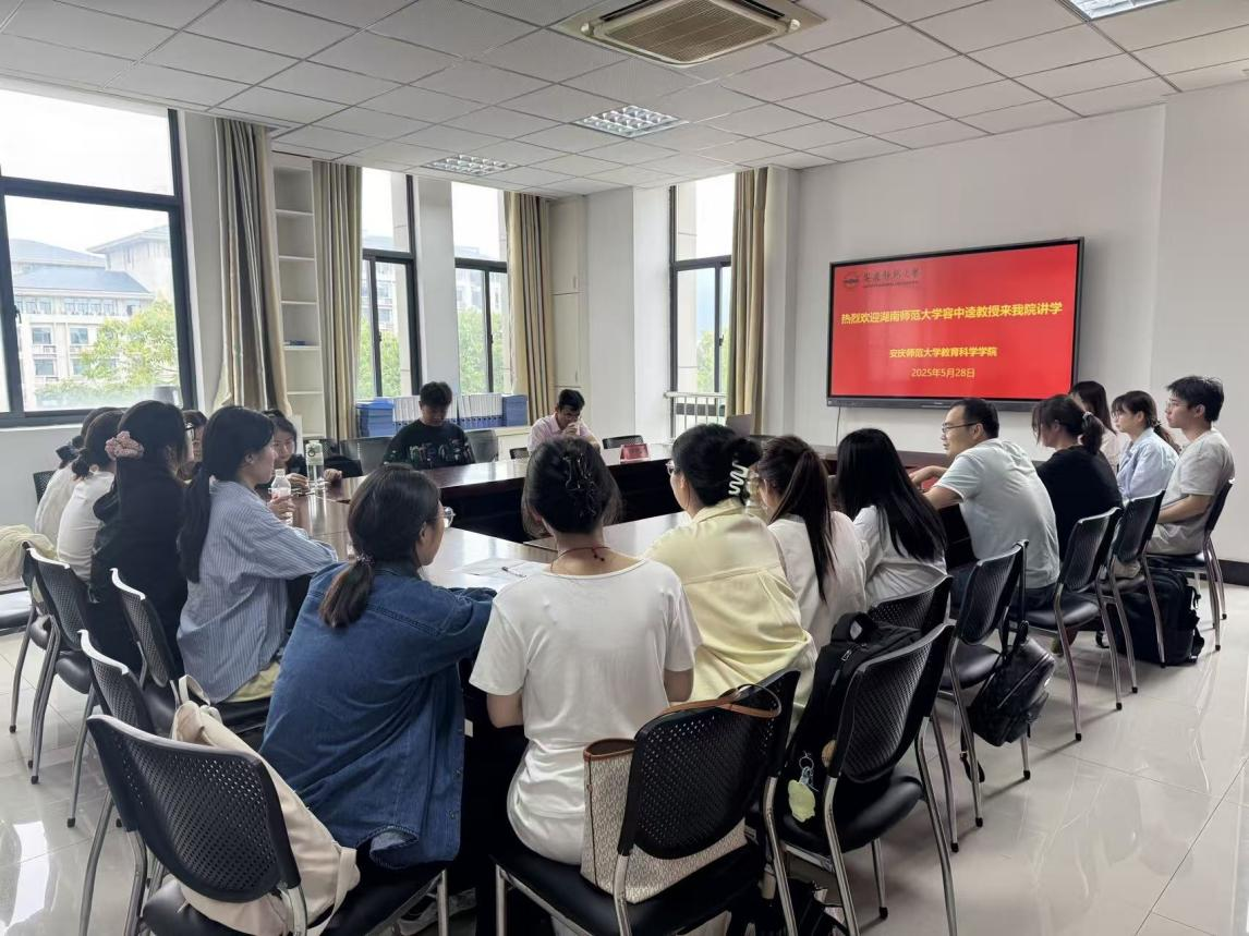 5月28日,湖南师范大学博士生导师容中逵教授为beat365师生开展题为“基础教育改革散论”的学术讲座。本次讲座由副院长陈效飞主持,beat365师生40余人参加了本次讲座。