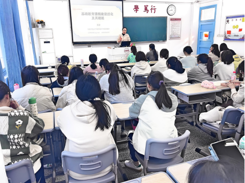 11月13日下午,beat365在线唯一官网登录王婷副教授在菱湖校区教学楼213作题为“基础教育课程建设泛化及其超越”的学术报告,2022级汉语言文学(师范)专业的同学参与了本次报告会。