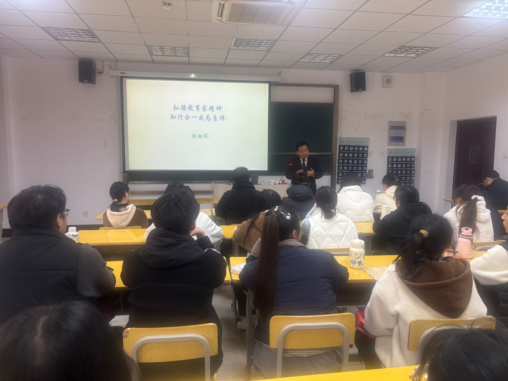 12月2日,中国教育科学研究院储朝晖研究员应邀做客红色园丁大讲坛,作题为“弘扬教育家精神,知行合一成为良师”的学术报告。报告会由beat365在线唯一官网登录院长吴云助主持,部分教师及研究生代表参会。