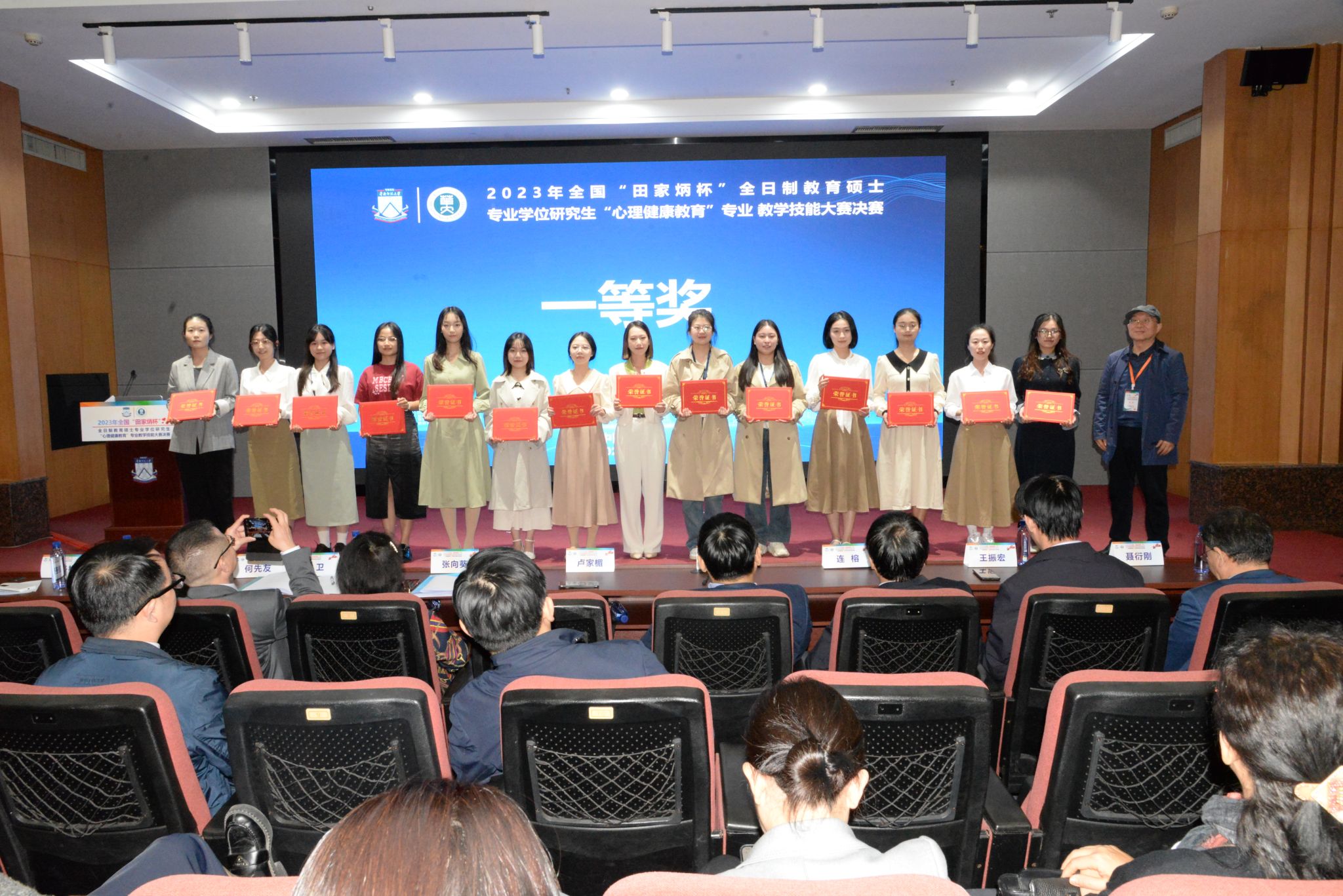 11月17日-19日,2023年全国“田家炳杯”全日制教育硕士专业学位研究生心理健康教育硕士教学技能大赛决赛在华南师范大学隆重举行。beat365心理健康教育硕士研究生张娜(2021级)、钟莉(2021级)、李伟洁(2022级)入围决赛并赴华南师范大学进行现场评比,指导教师宋志英陪同前往。
