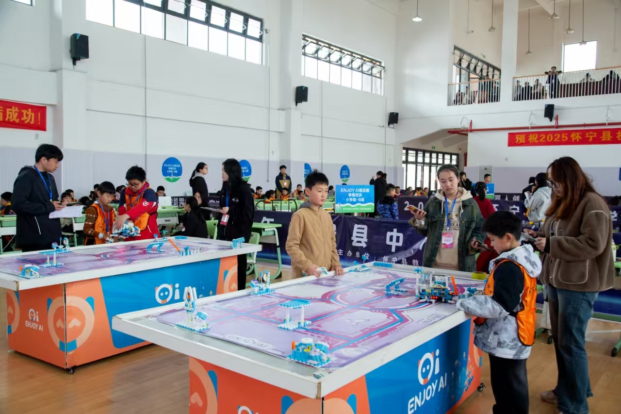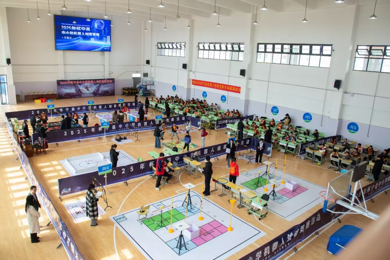 3月30日,2025年安庆市怀宁县中小学机器人创客竞赛圆满落幕。来自怀宁县的20余所中小学校、44支队伍,共120名师生参加ENJOY AI普及赛、MakeX Starter全芯征途、双足人形或多足仿生机器人、轮式或履带式行走机器人等9大项10小项的比赛。此次竞赛由怀宁县教育局主办,怀宁县稼先学校承办,怀宁创想星空公司协办。
