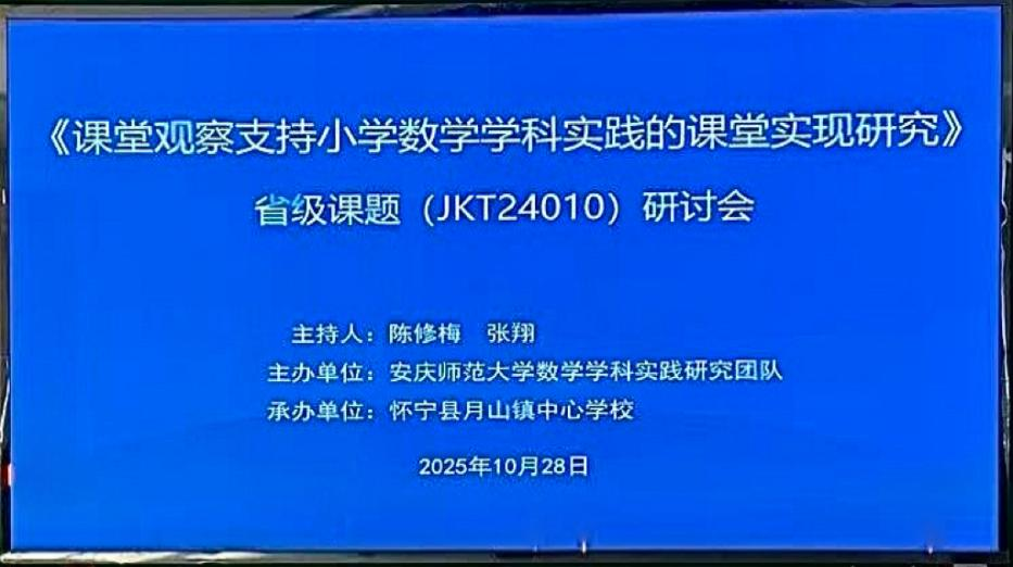 10月28日下午,beat365在线唯一官网登录陈修梅副教授、安庆石化三小张翔主任带领小学教育专业25级研究生,赴怀宁县月山镇中心学校开展数学概念学科实践专项活动。本次活动既是研究生专业课程《课堂观察与评价》的实操环节,也是安徽省教育科学研究课题《课堂观察支持小学数学学科实践的课堂实现》的专项研究内容。