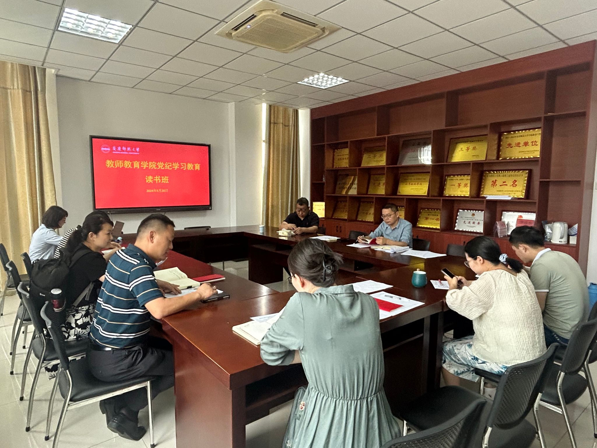 近日,教师教育学院党委在J202会议室举办党纪学习教育读书班,深入学习习近平总书记关于全面加强党的纪律建设的重要论述,认真学习《中国共产党纪律处分条例》,增强政治定力、纪律定力、道德定力、抵腐定力。会议由学院党委书记何孔蛟主持,学院全体党委委员、党支部书记、辅导员参加会议。