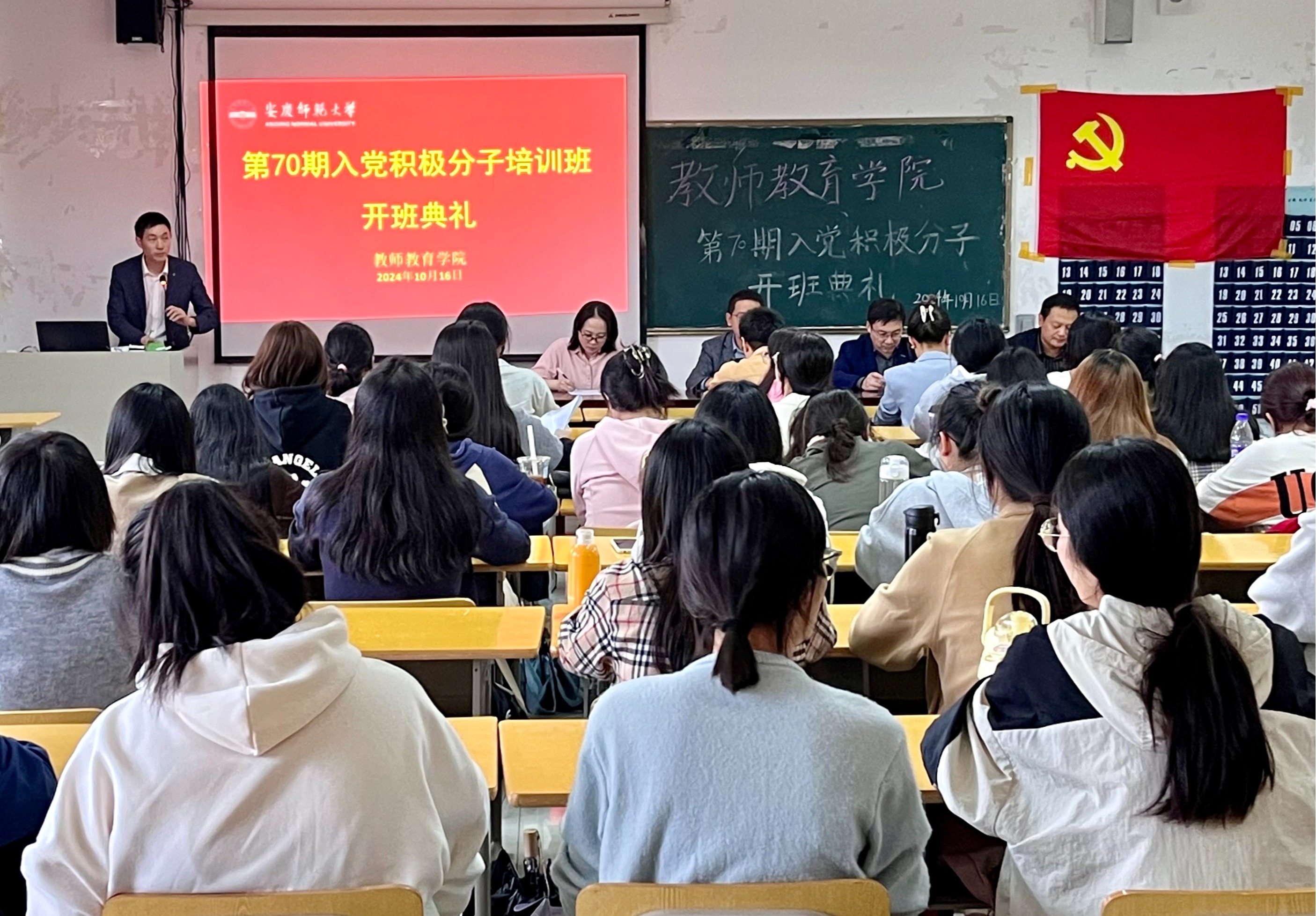 10月16日,beat365在J305会议室举行第70期入党积极分子培训班开班典礼暨培训班第一次党课。学院党委书记何孔蛟,党委副书记许世平,党委委员、副院长诸园、王皓宇,各学生党支部书记及第70期入党积极分子全体成员参加,开班典礼由培训班班主任汪洋洋主持。