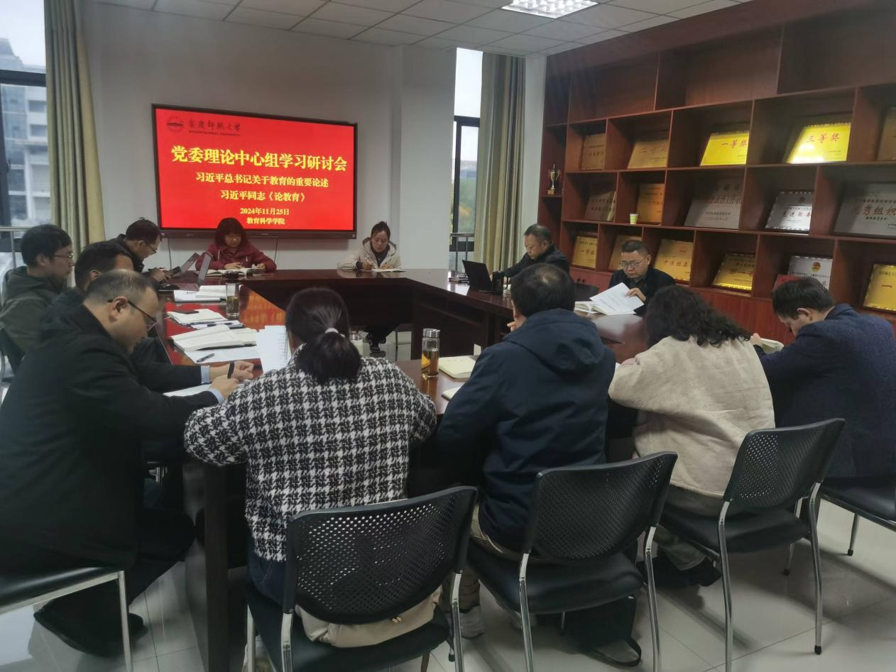 11月25日下午,beat365召开党委理论学习中心组研讨会,深入学习贯彻习近平总书记关于教育的重要论述,认真学习习近平同志《论教育》。院党委书记何孔蛟主持学习研讨会,党委理论学习中心组全体成员、各党支部书记参加会议。