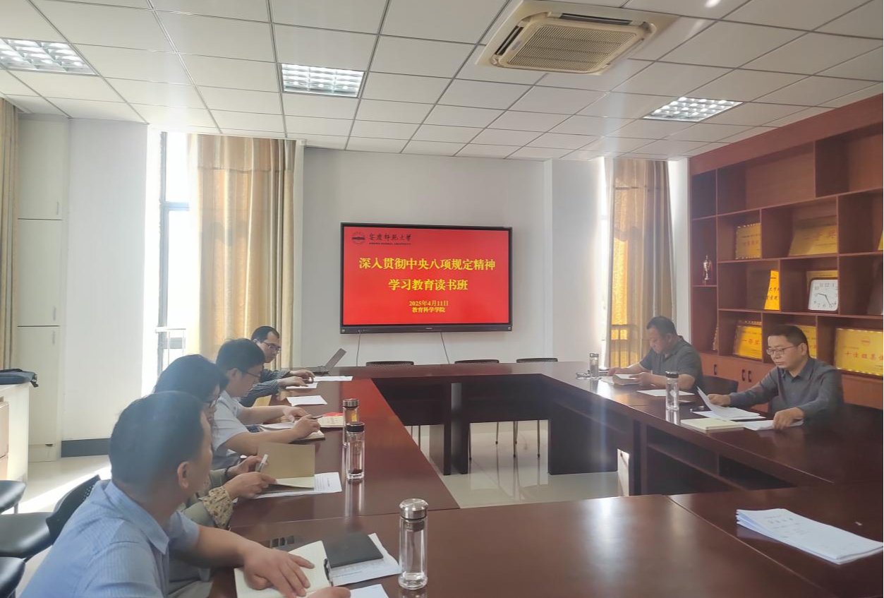 4月11日,beat365在线唯一官网登录在J202会议室举办深入贯彻中央八项规定精神学习教育读书班。学院党委班子全体成员出席会议,会议由党委书记何孔蛟主持。